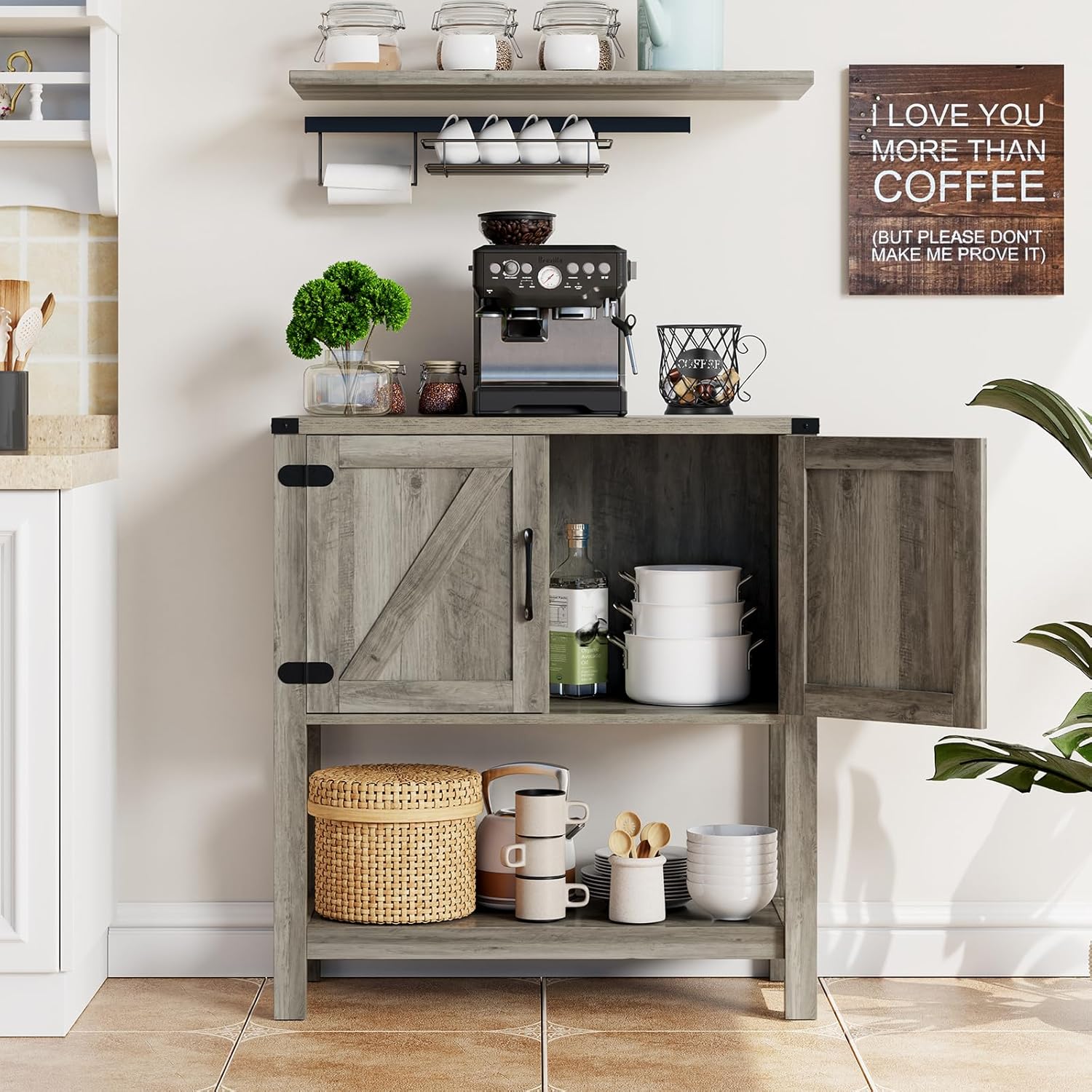 - 【Spacious Storage Space】The size of the coffee bar entrance table-31.5 L x 13.8 D x 34.65 H inches, weight 46.2lb. The buffet cabinet with storage top board and bottom shelf can place your coffee maker, microwave oven, or decorations. And 2 storage cabinets for ensure that you can provide sample space to tableware, plants, glassware, etc., so that your living room is clean and tidy!board and bottom shelf can place your coffee maker, microwave oven, or decorations.And 2 storage cabinets to ensure that you can provide sample space to tableware, plants, glassware, etc., so that your home is clean and tidy!
