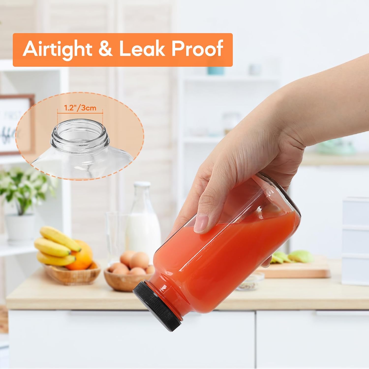 STARSIDE 8 oz 3 Pack Glass Juice Bottles with Lids - Square Reusable Drinking Jars for Juicing, Milk, Kombucha - Includes 1 Bottle Brush, 6 Colored Labels