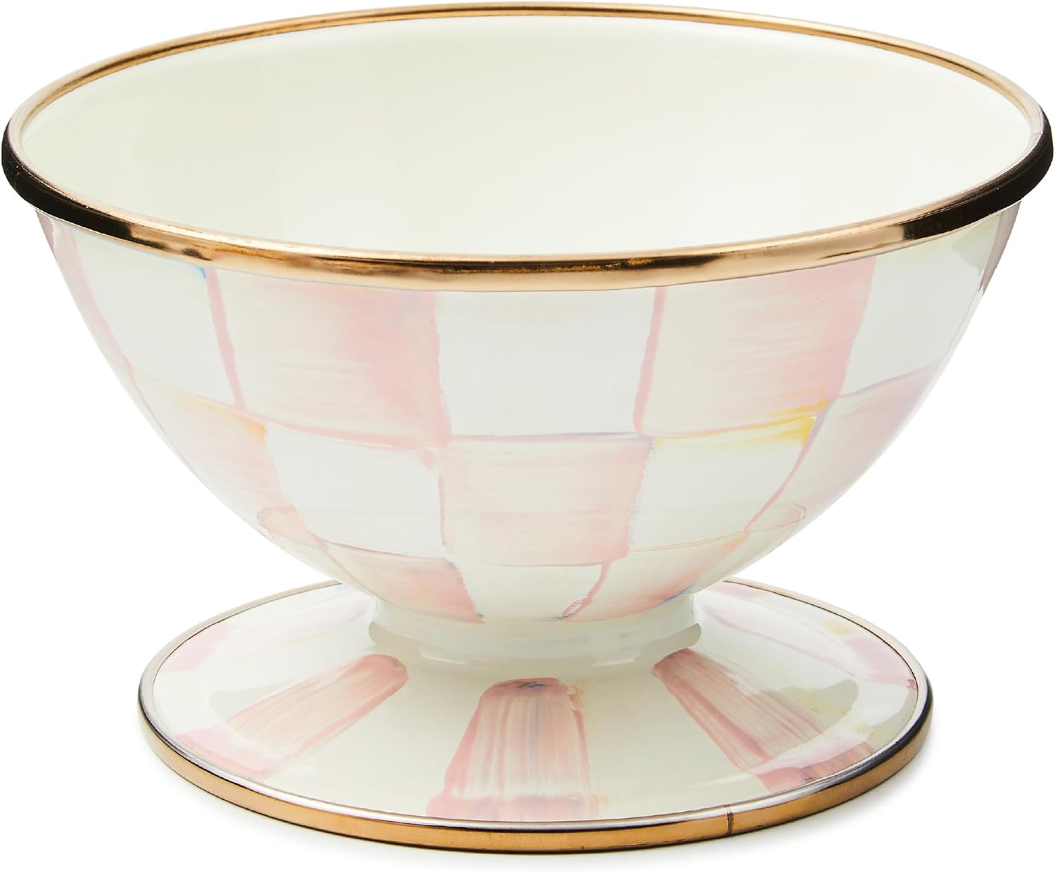 MACKENZIE-CHILDS Enamel Ice Cream Bowl, Serving Bowl for Entertaining, 2-Cup Capacity, Pink-and-White Rosy Check
