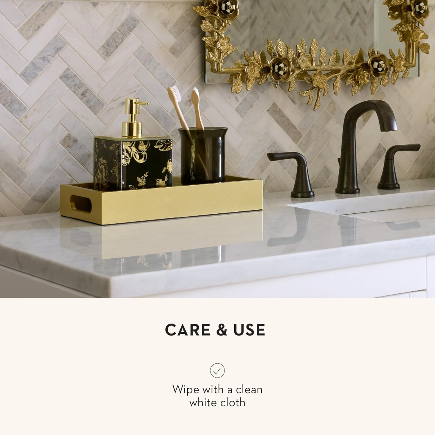 - VANITY ORGANIZER TRAY WITH HANDLES: Make any room stand out with our unique vanity tray. This decorative tray is a pretty and practical way to organize makeup, candles, perfume bottles, hand towels, or jewelry on any nightstand or bathroom vanity.