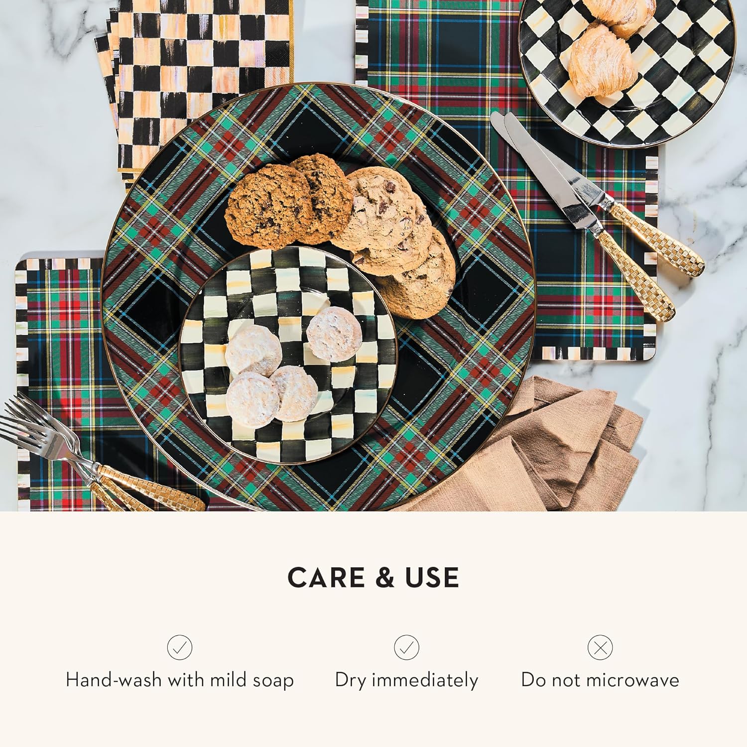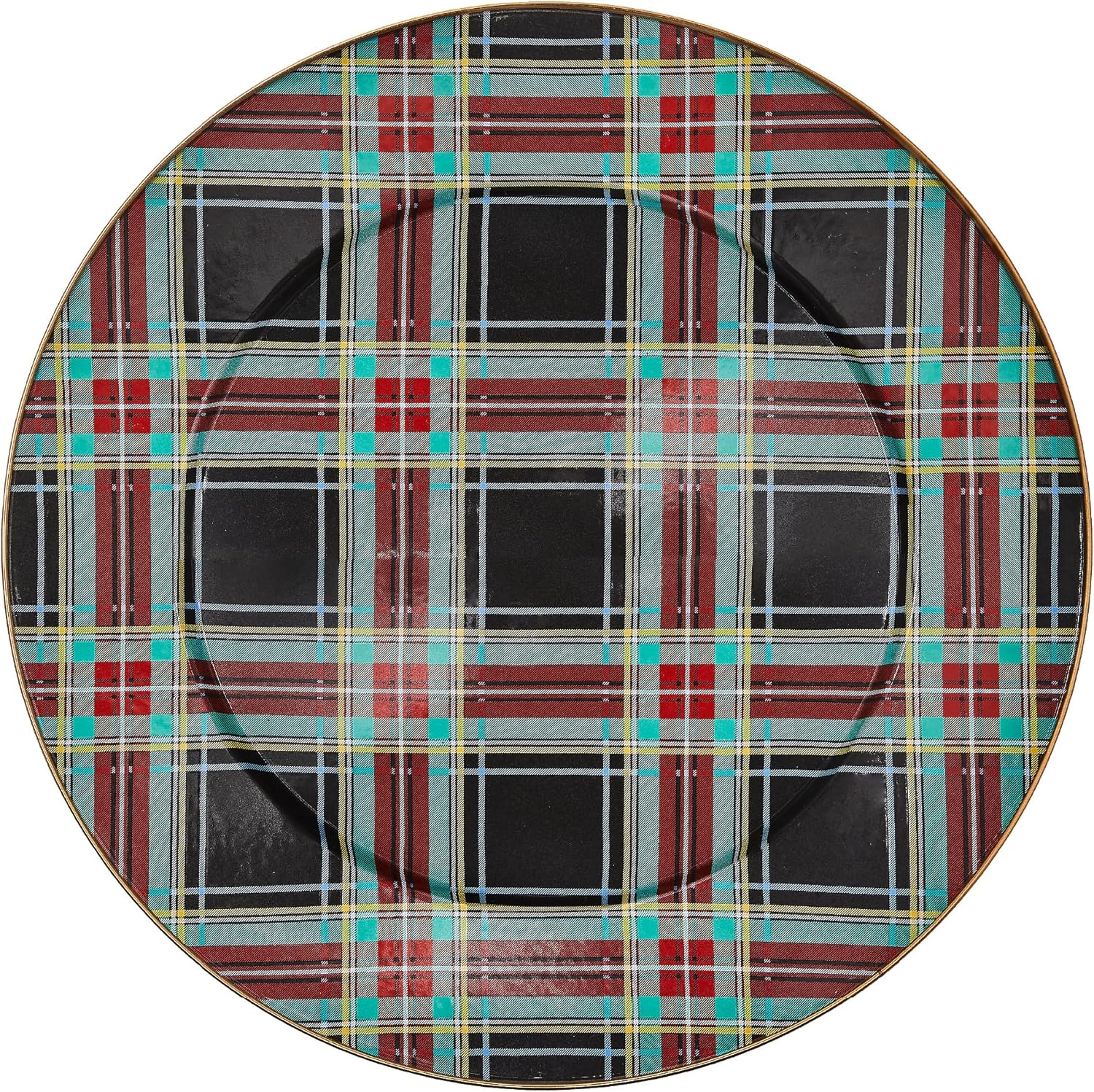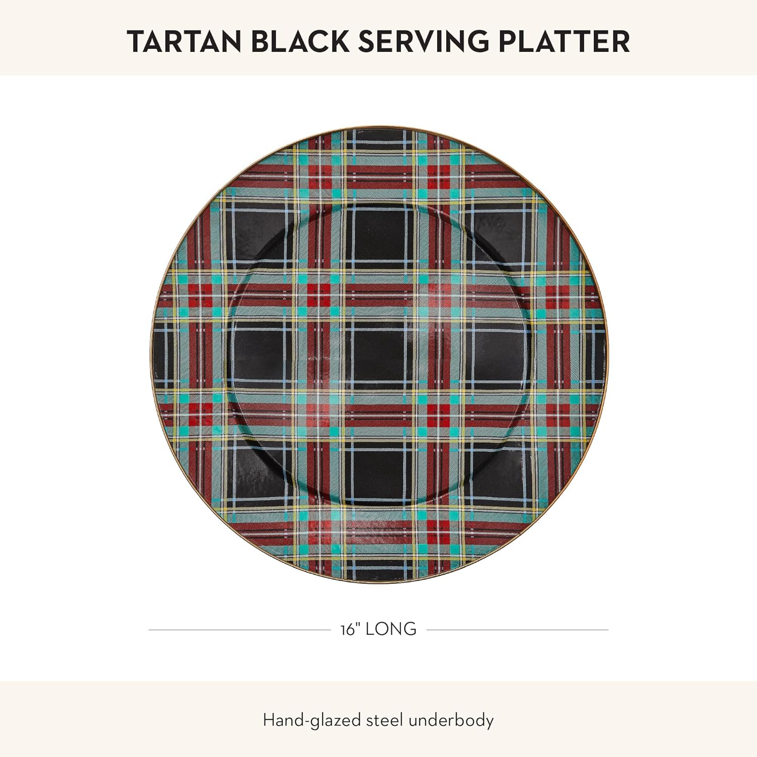 - ELEGANT SERVING PLATE: Get festive with the Black Tartan Enamel Serving Platter. This decorative platter tray is great for holidays or everyday events and features a traditional black tartan pattern with red, green, and yellow accents.