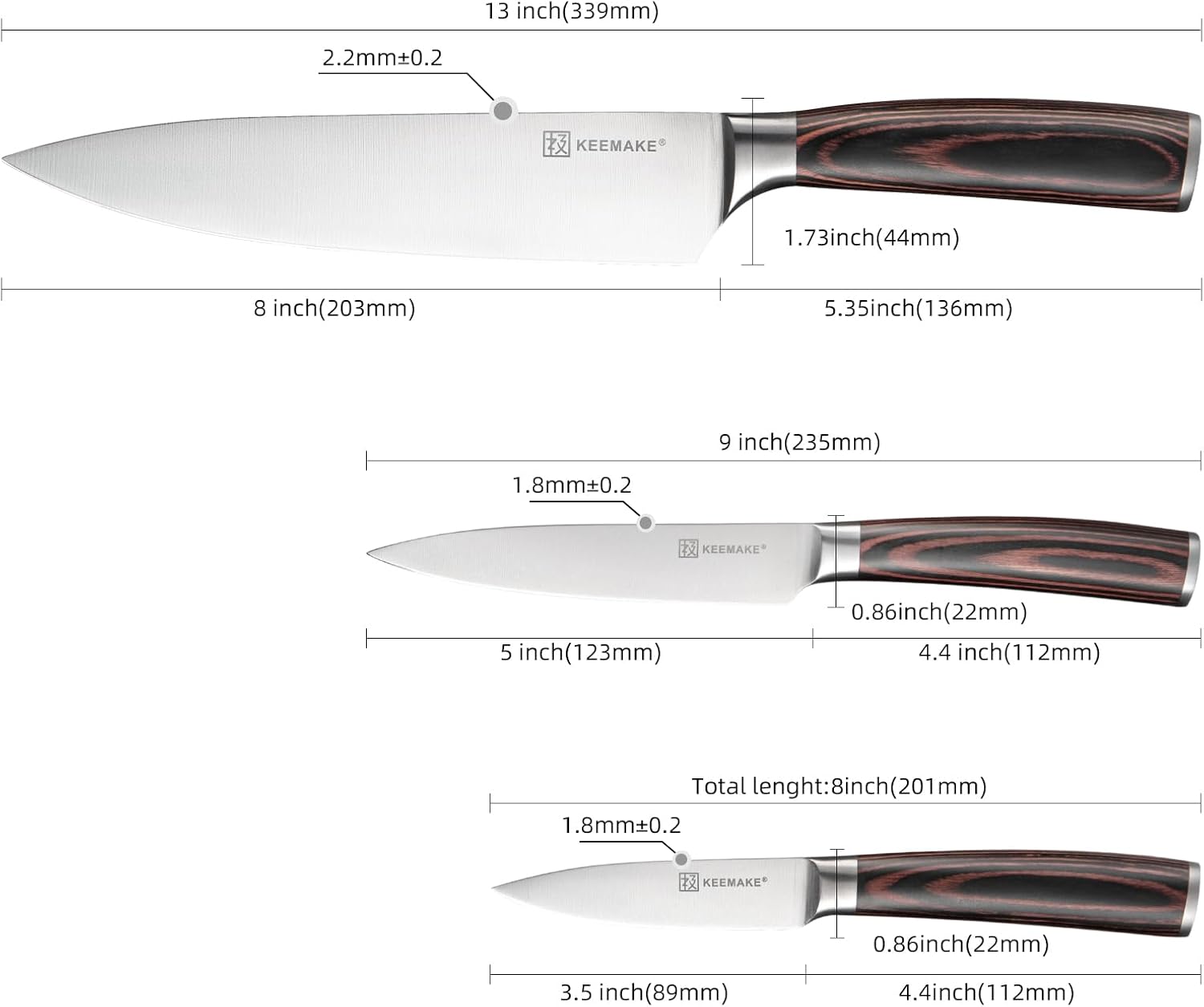 KEEMAKE Knife Set 3 Pieces - Kitchen Knives 1.4116 High Carbon Stainless Steel Professional Chef Knife Set, Razor Sharp Cooking Knife with Ergonomic Pakkawood Handle for Home Cooking and Restaurant