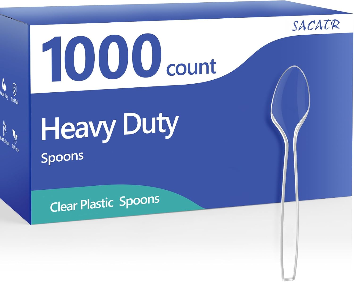 1000 Count Clear Plastic Spoons Bulk - Plastic Silverware Spoons Heavy Duty, Premium Disposable Spoons, BPA-Free, Heat Resistant, Suitable for Parties, Events, and Everyday Use