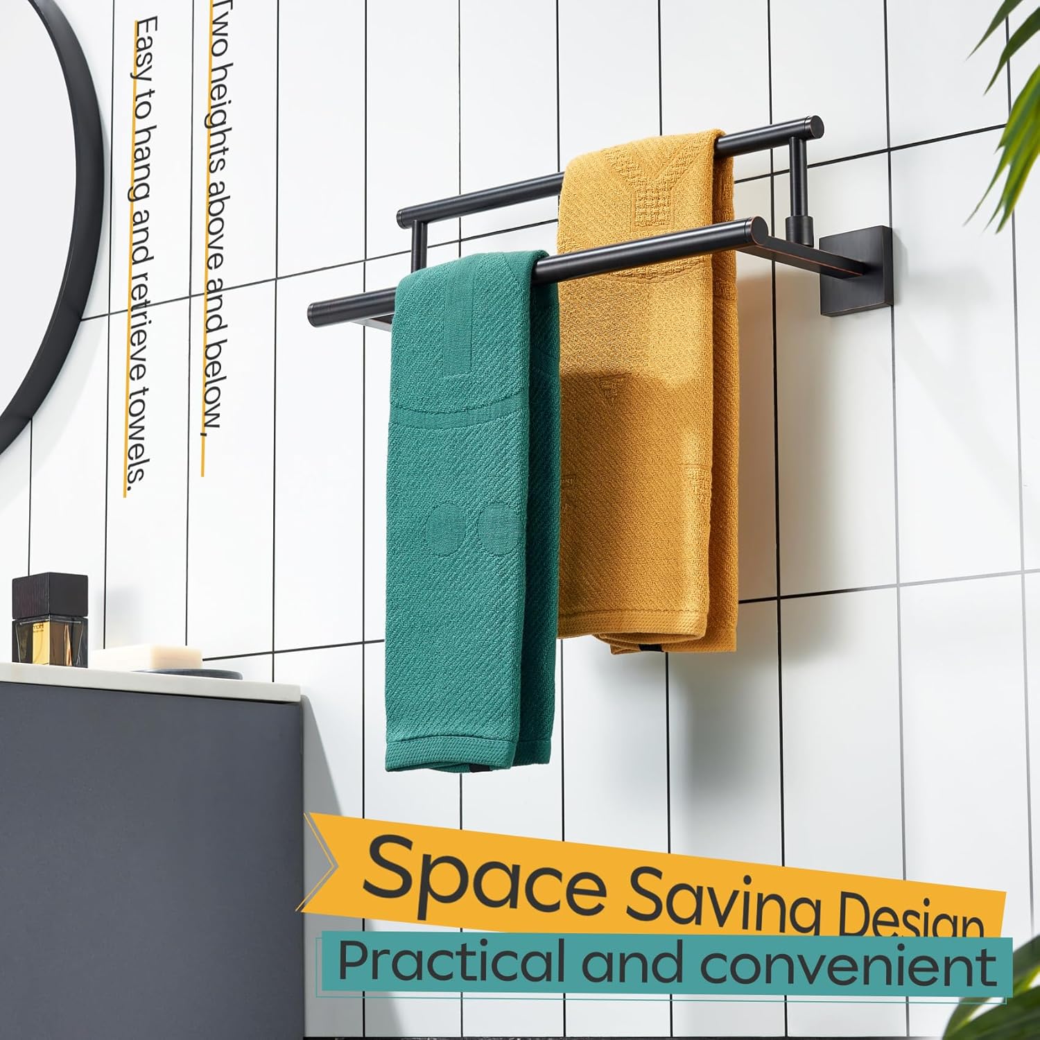 - ◄ MODERN DESIGN ► KOKOSIRI double towel rack with two rails combines elegant square, sleek round, and unique rectangle elements to bring a modern aesthetic to your bathroom, shower room, toilet, kitchen, washroom, pool or garage. You can choose from our series of bathroom hardware for a complete, coordinated look to your place