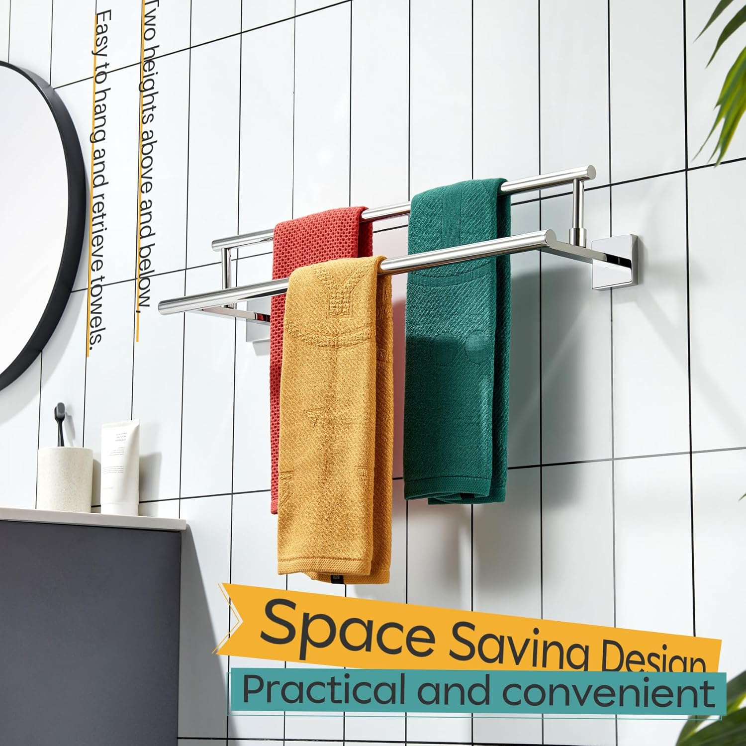 KOKOSIRI Towel Holder 24-Inch Bathroom Double Bath Towel Bars Kitchen Rack Wall Mounted Polished Chrome Stainless Steel B5009CH-L24