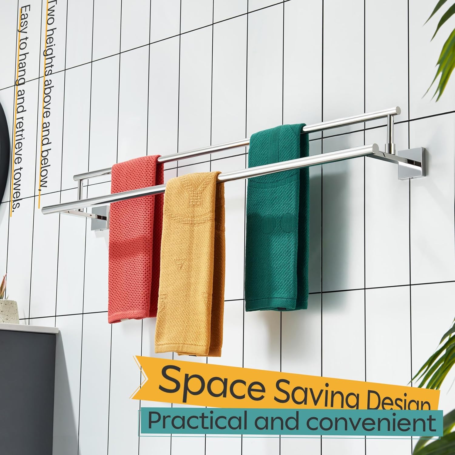- ◄ PREMIUM MATERIAL ► KOKOSIRI Double Towel Bars made of SUS304 Stainless Steel and features an all-metal design using high-grade steel to resist rust and corrosion from daily use. For your health, all the materials we use are the highest quality and harmless. You can rest assured to use all of our products