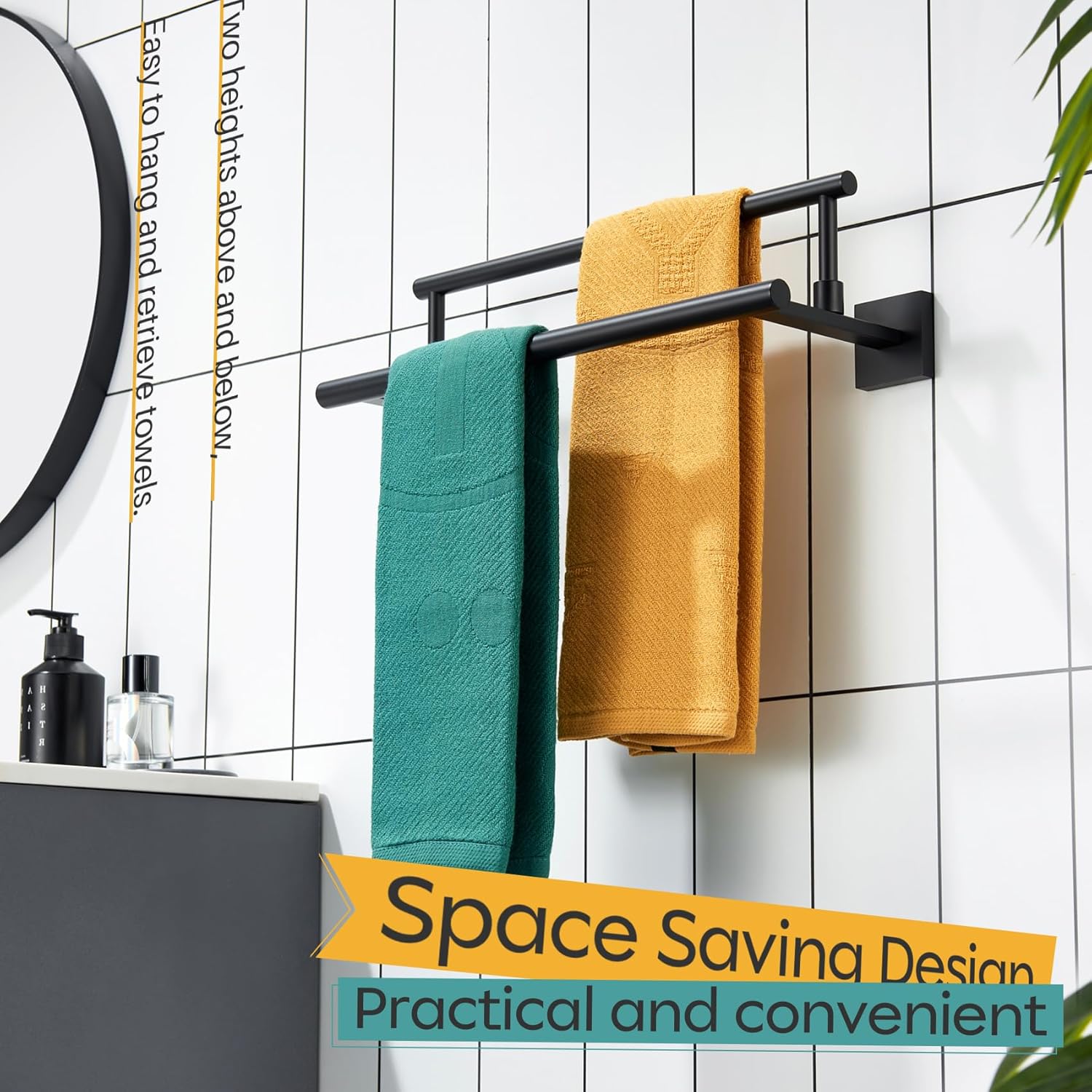 - ◄ MODERN DESIGN ► KOKOSIRI double towel rack with two rails combines elegant square, sleek round, and unique rectangle elements to bring a modern aesthetic to your bathroom, shower room, toilet, kitchen, washroom, pool or garage. You can choose from our series of bathroom hardware for a complete, coordinated look to your place