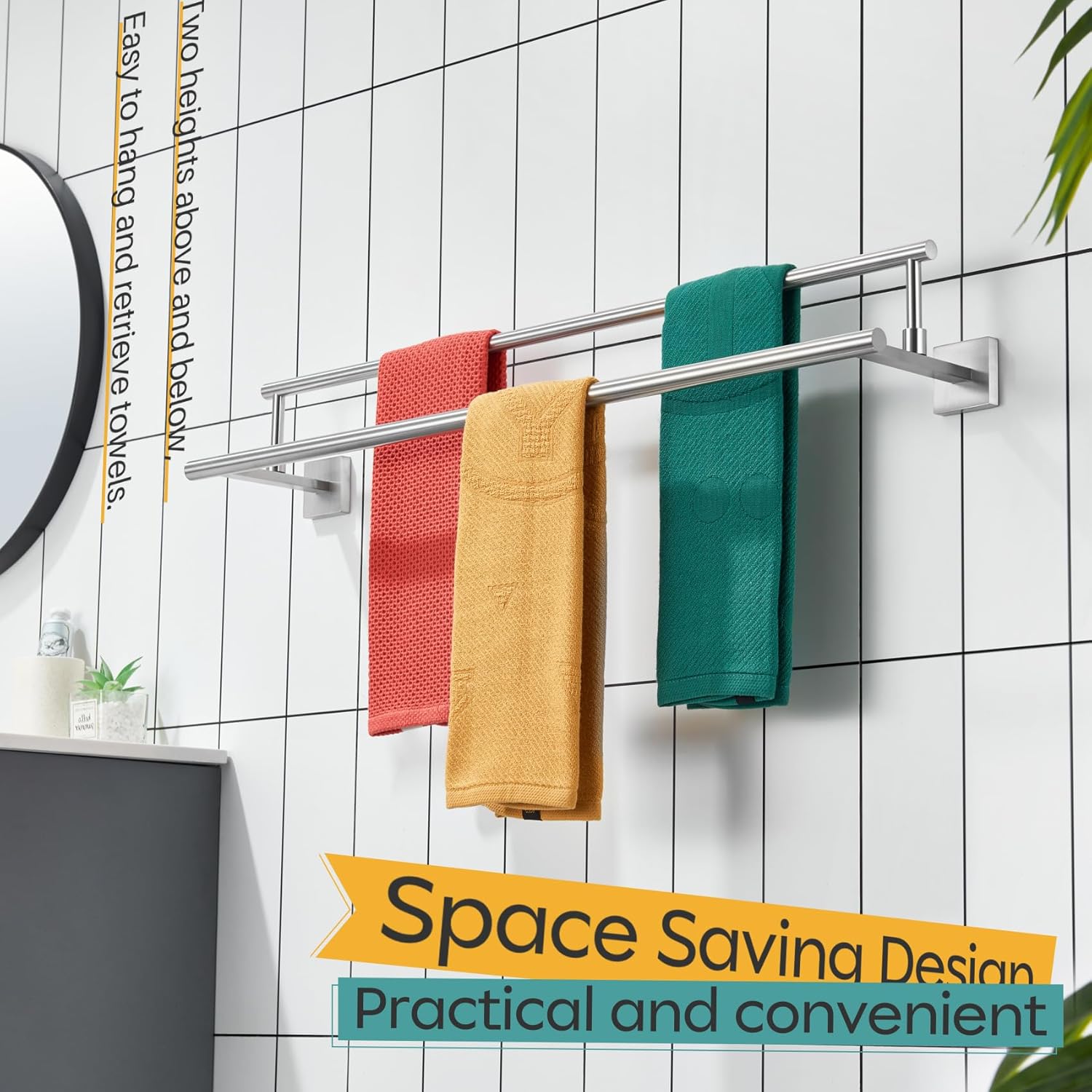 - ◄ PREMIUM MATERIAL ► KOKOSIRI Double Towel Bars made of SUS304 Stainless Steel and features an all-metal design using high-grade steel to resist rust and corrosion from daily use. For your health, all the materials we use are the highest quality and harmless. You can rest assured to use all of our products
