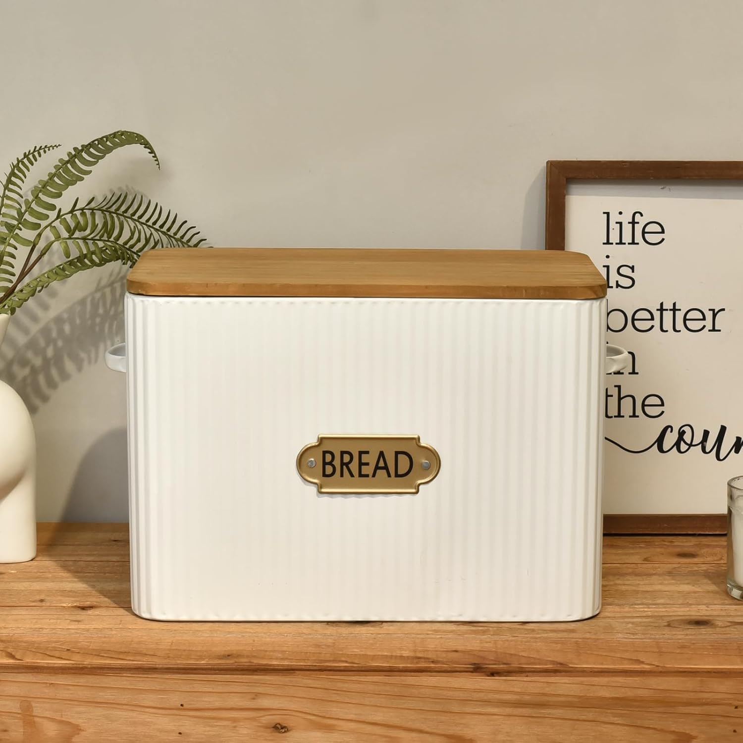 - Charming Farmhouse Design: Elevate the aesthetic of your kitchen decor with the charming farmhouse design and rustic wooden lid of our bread box. It's not just a bread holder; it's a statement piece that adds a touch of country styling to your space.
