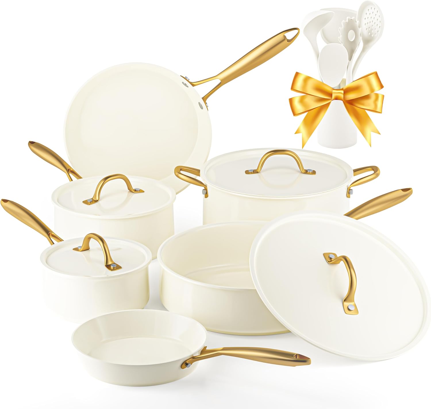 Pots and Pans Set Non Stick - VONIKI Ceramic Cookware Set with Cooking Utensils Set, Non Toxic Kitchen Cookware Sets Dutch Oven Pot with Lid Saucepan Set Sauté Pan Frying Pan Set for Cooking Gifts