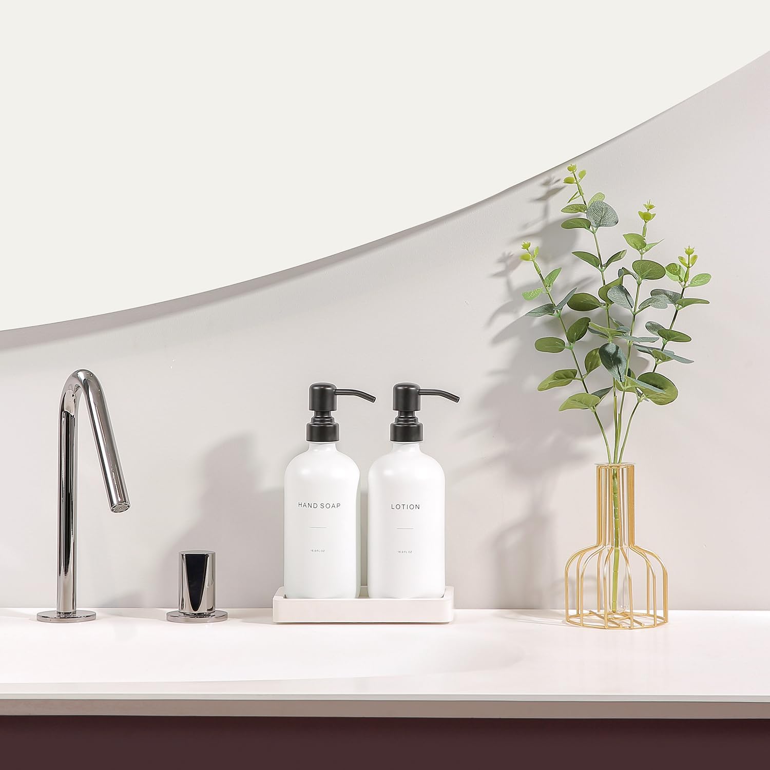 - [Modern Minimalist] The white soap dispenser bathroom set gives out contemporary flair vibes. With its modern and fashionable appearance, our bathroom soap set will effortlessly enhance the aesthetic of any bathroom.