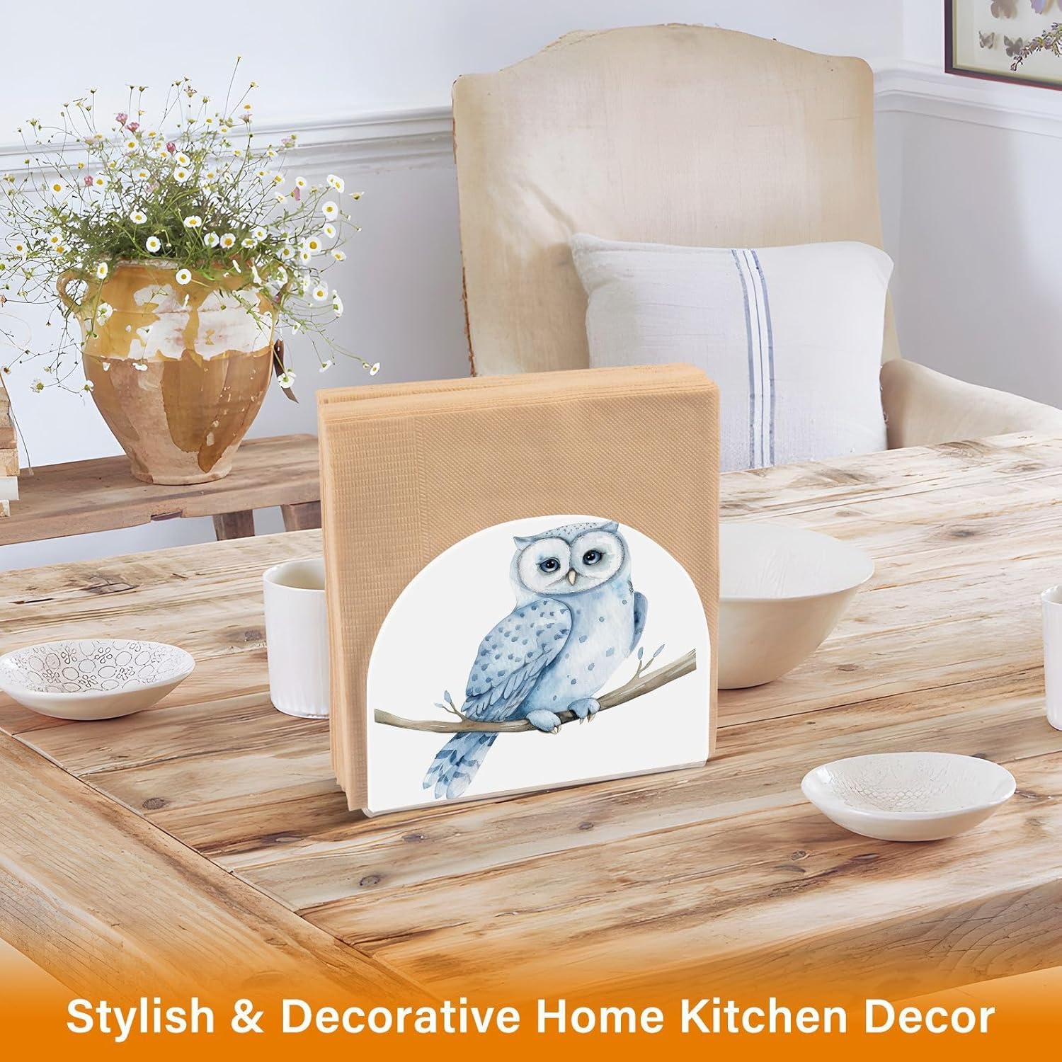 Blue Owl on Branch Napkin Holder for Table Paper Napkins Holder Acrylic Tissue Dispenser Kitchen Dining Room Bathroom Party Car Decor