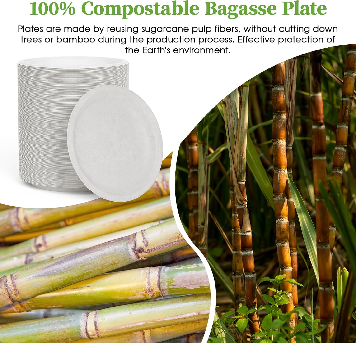 - Green Choice: Our 6 inch disposable dessert paper plates are made from 100% biodegradable sugarcane, avoiding tree cutting and protecting the environment