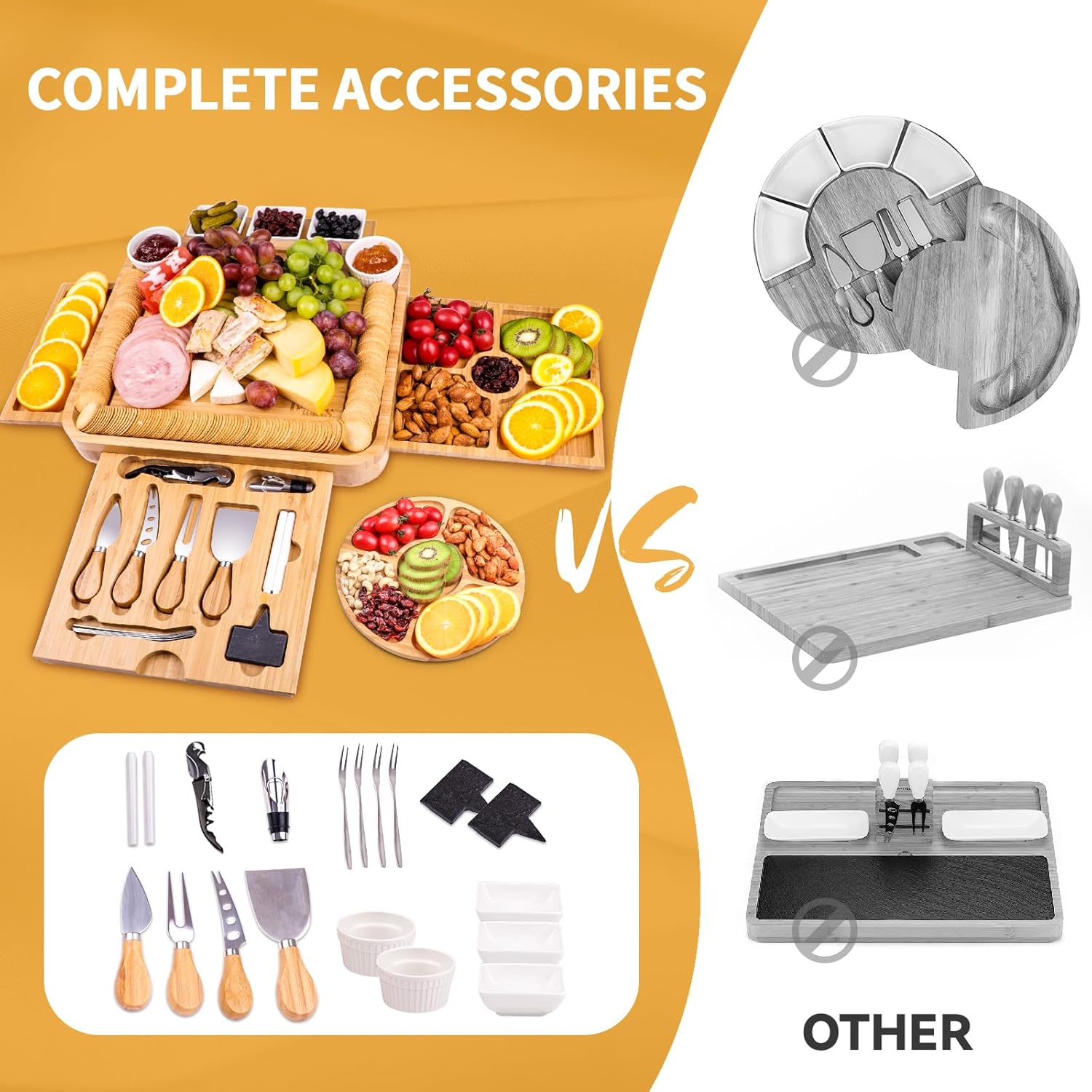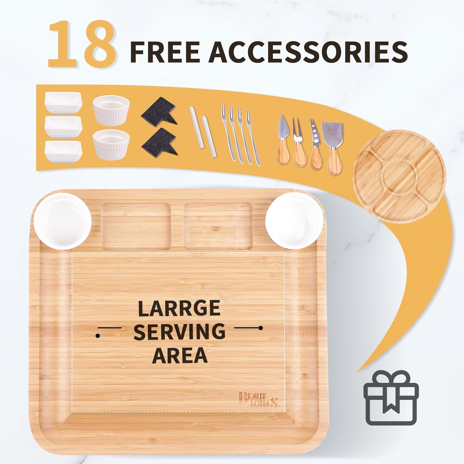 Charcuterie Board Gift Set, Bamboo Cheese Board Gift Set with 20 Accessories, Large Charcuterie Boards Set for House Warming, Wedding, Bridal Shower