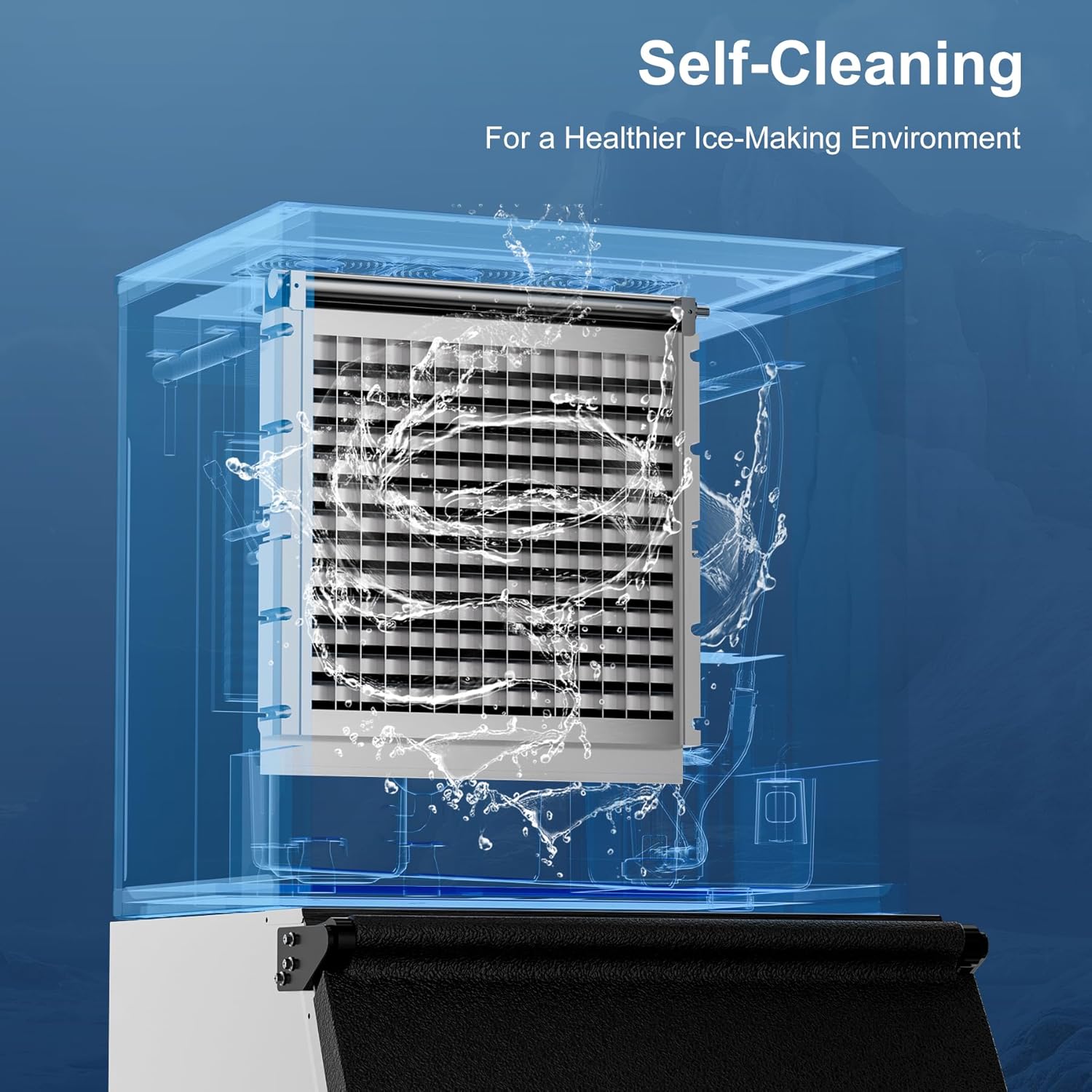 - 【Powerful & Rapid Commercial Ice Maker】Designed for high-demand commercial use, this commercial ice maker produces up to 550 lbs of ice per day. Four powerful top-mounted cooling fans accelerate heat dissipation, keeping the system running efficiently and helping to maintain consistent ice production even in hot environments. Ideal for restaurants, bars, and other ice-intensive operations.