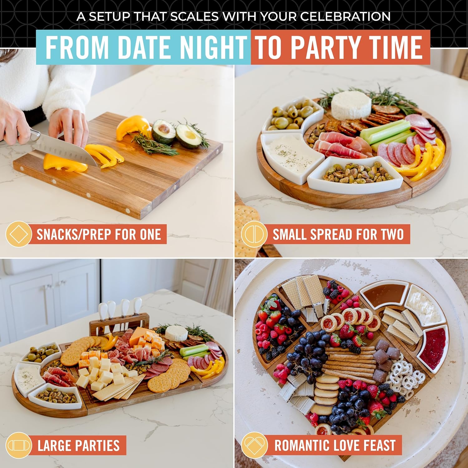 - ๐ ๐ฎ๐ด๐ป๐ฒ๐๐ถ๐ฐ, ๐ฆ๐ผ ๐ฌ๐ผ๐ ๐๐ฎ๐ป ๐๐ต๐ฎ๐ป๐ด๐ฒ ๐๐ต๐ฒ ๐๐ฟ๐ฟ๐ฎ๐ป๐ด๐ฒ๐บ๐ฒ๐ป๐: Our large, magnetic charcuterie board centers around a 13โ x 13โ square board, ideal for a small gathering, and when you attach the two magnetic semi-circle end pieces, it expands to 26" x 13โ - perfect for a large party. You can arrange the long board altogether, as a circle and square, and even as a heart shape! This flexibility lets you adjust the boardโs size and shape to match the occasion.