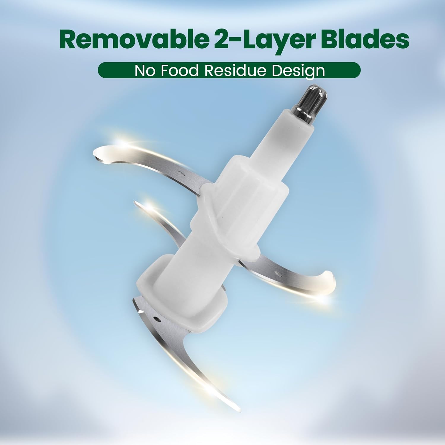 - Safe and Efficient: Equipped with a full copper motor, with a lifespan more than three times longer than ordinary motors,ensures the durability and stability of the electric chopper, importantly provides a safer for your family. The patented automatic stop design and blade spring loading mechanism effectively prevent accidents. this non-slip base and overheating protection system greatly ensure the stability and safety