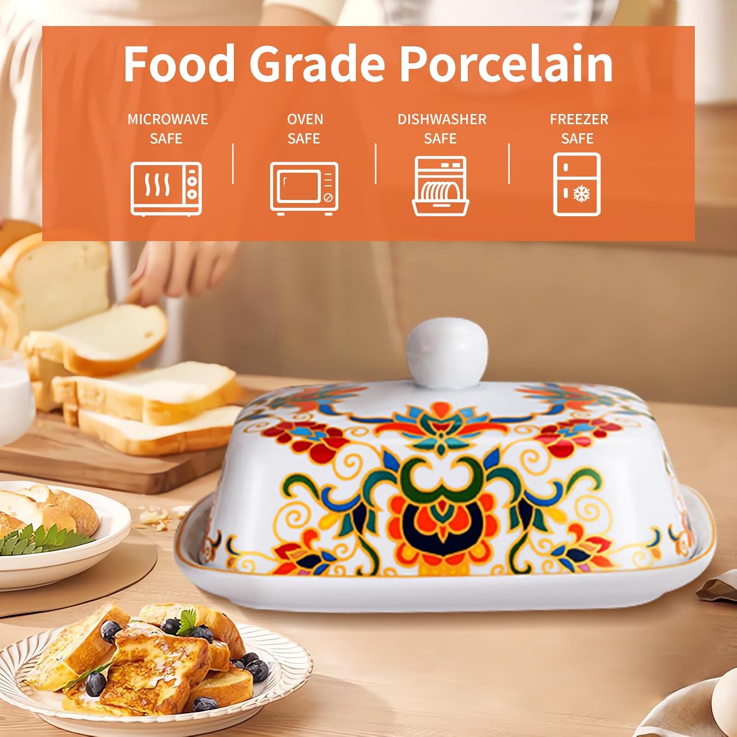 - Safety and Durable:Our glazes are lead free, meaning you will never have to worry about lead leaching into your body system and making you sick. This butter dish are fired at a high temperature to maximize the strength of the porcelain. Porcelain also won't absorb odor or bacteria, It is microwave, oven, and freezer safe, making the butter tray fit for hot and cold temperatures. It can be easily cleaned in the dishwasher or with a soft cloth.