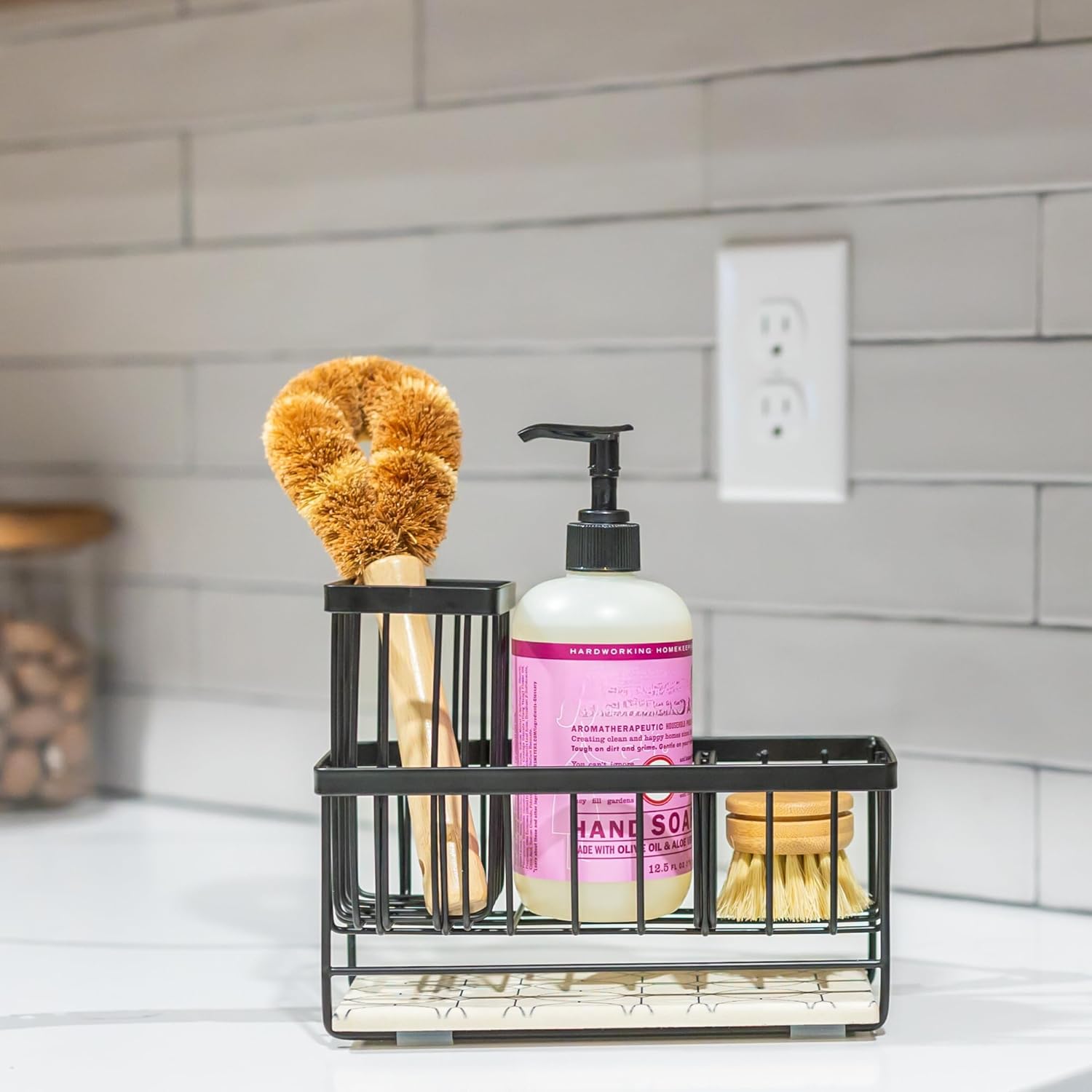 - Kitchen Brush Holder & Sponge Storage: This quick-dry dish soap and sponge holder for kitchen sinks provides a convenient way to keep essentials within reach. Features a durable design, making it an excellent kitchen caddy sink organizer