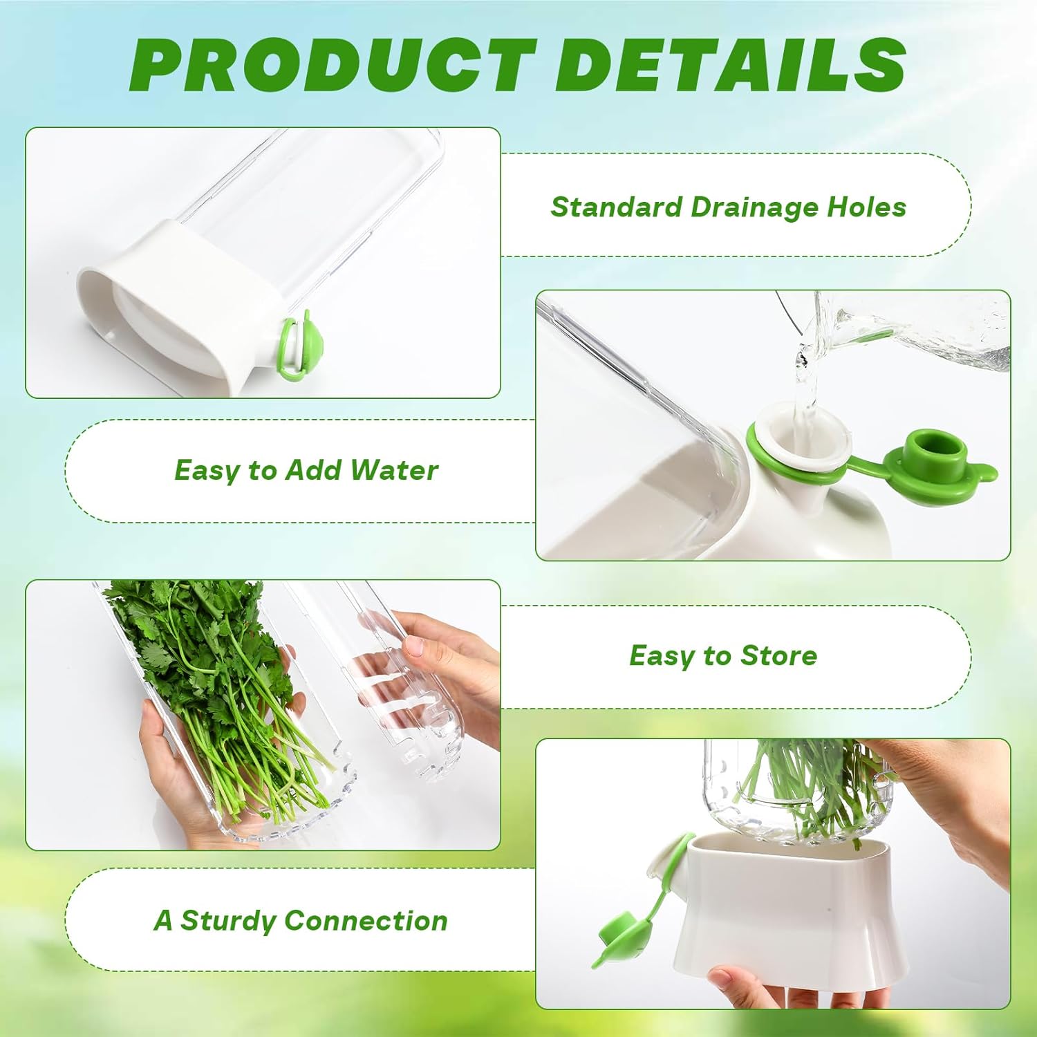 - Long Preservation Time: this herb containers can keep herbs fresh for up to 3 weeks, allowing you to eat fresh vegetables at any time, depending on the relative characteristics of the vegetables and herbs involved; For better results, remember to replace the fresh water every 3–5 days