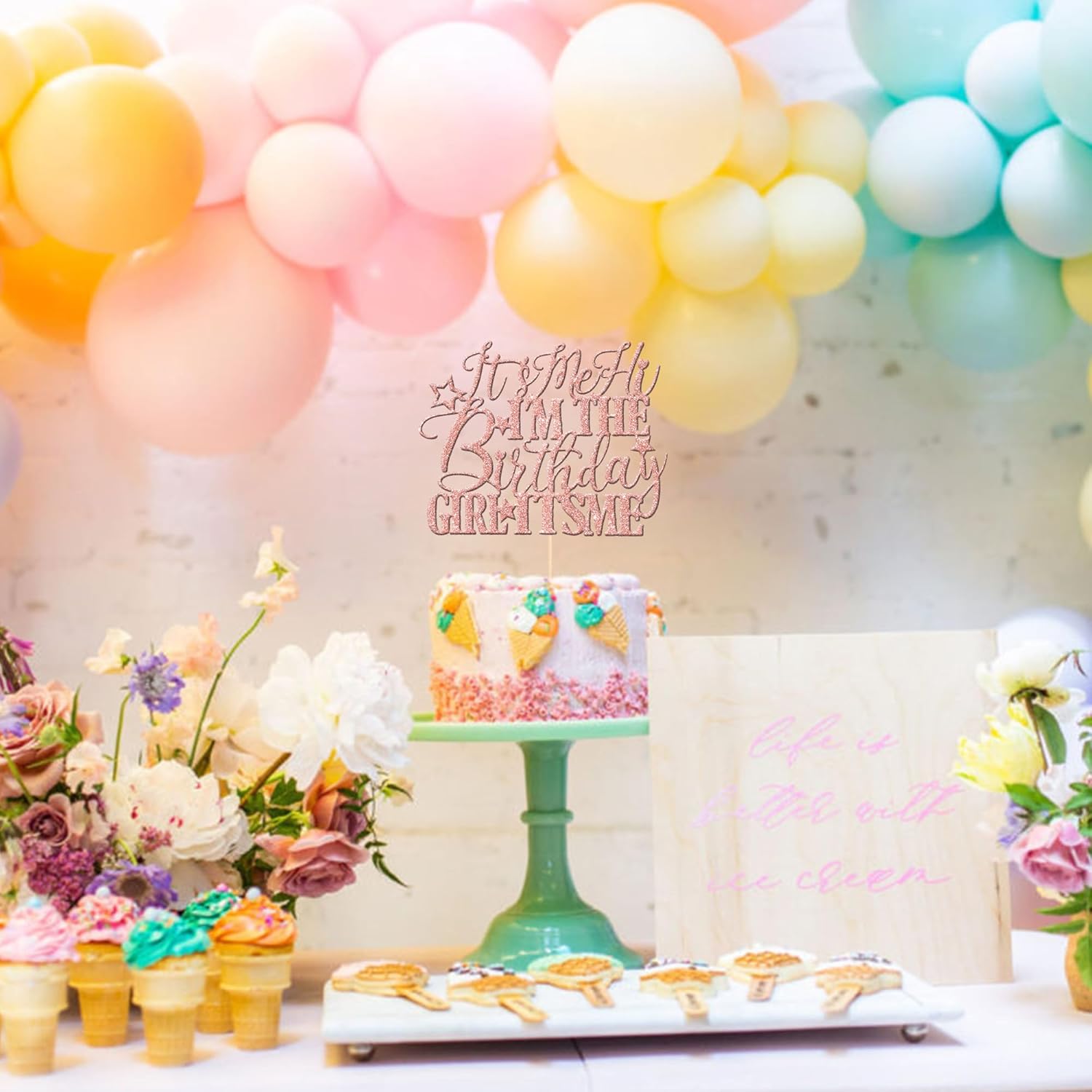 1 PCS It's Me Hi I'm the Birthday Girl It's Me Cake Topper Glitter Music Singer Cake Pick for Funny Hip Hop Singer Girls Birthday Party Cake Decorations Supplies Rose Gold