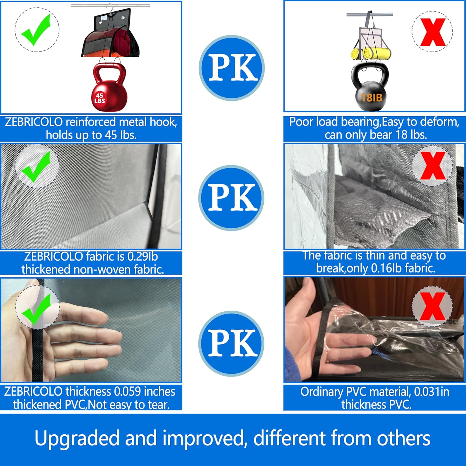 - closet organizers and storage,The thicken metal hooks ensure durability and stability when hanging, providing reliable support for your belongings.legging organizer,closet organizer,Each individual pocket is very roomy. closet organizers and storage、The clear plastic makes it easy to see what’s stored inside. The hanger is sturdy and holds the weight(40lb)Very strong load-bearing,The pockets are giant.