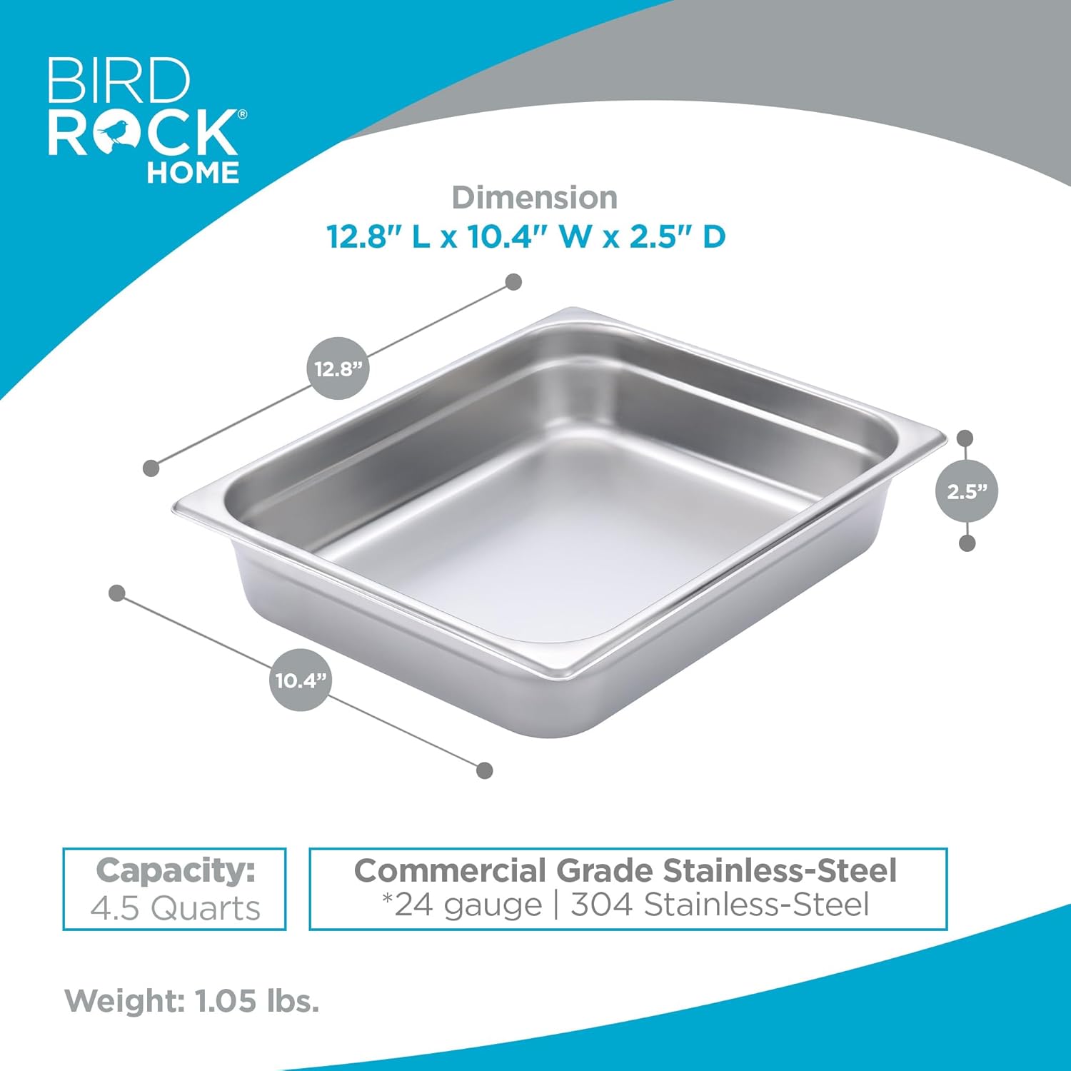 - STAINLESS STEEL CONSTRUCTION: BIRDROCK HOME Steam Table Pans are designed for restaurant and catering needs. Made from 24-gauge, 304 stainless steel, these pans are suitable for meal prep, cooking, and food storage, providing a sturdy and warp-resistant structure.