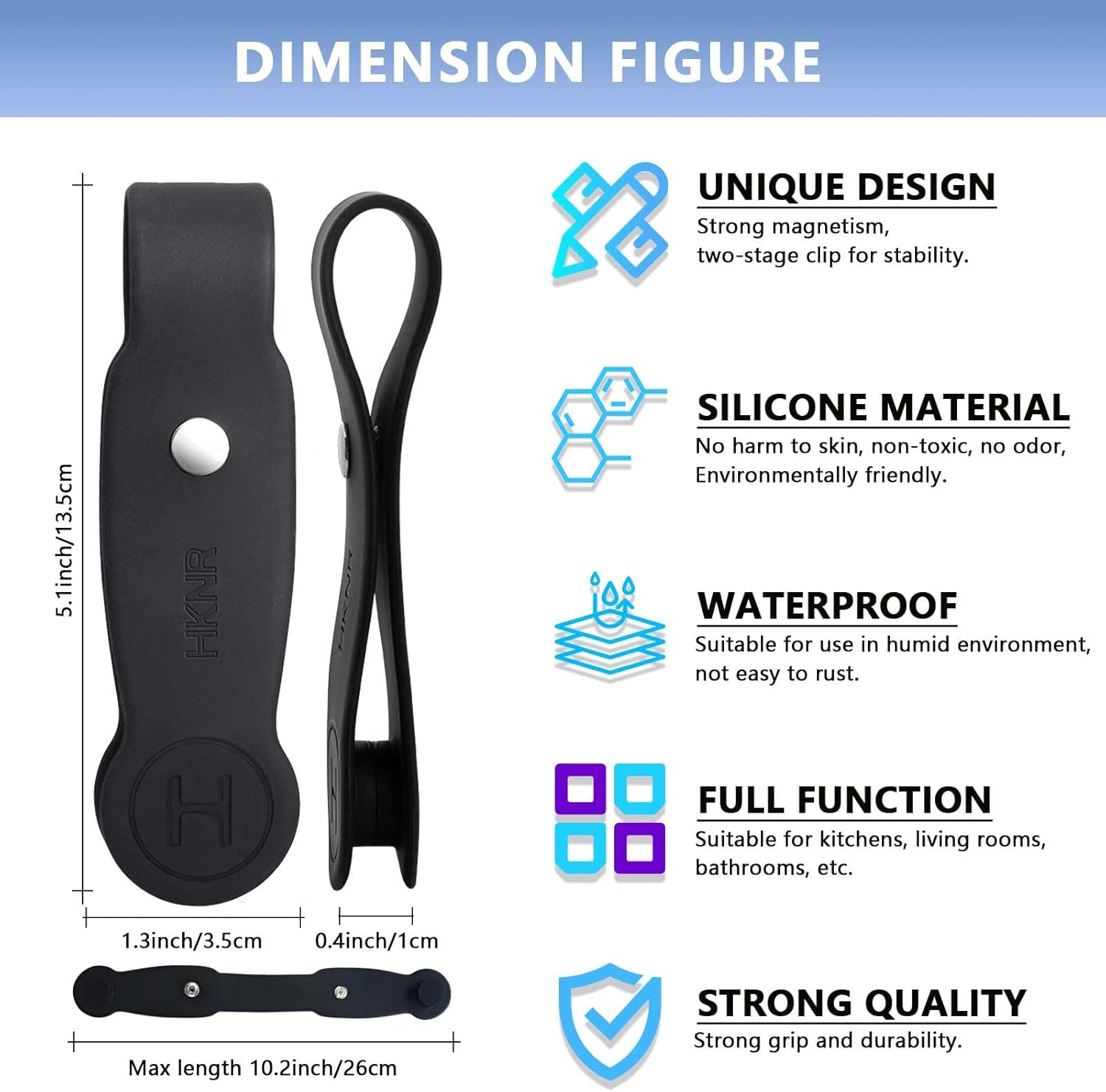 2 Pcs Strong Magnetic Towel Clips for Kitchen, Waterproof Silicone Towel Holder, Multi-Purpose Towel Holder for Bathroom, Kitchen, Outdoor Use (Black)
