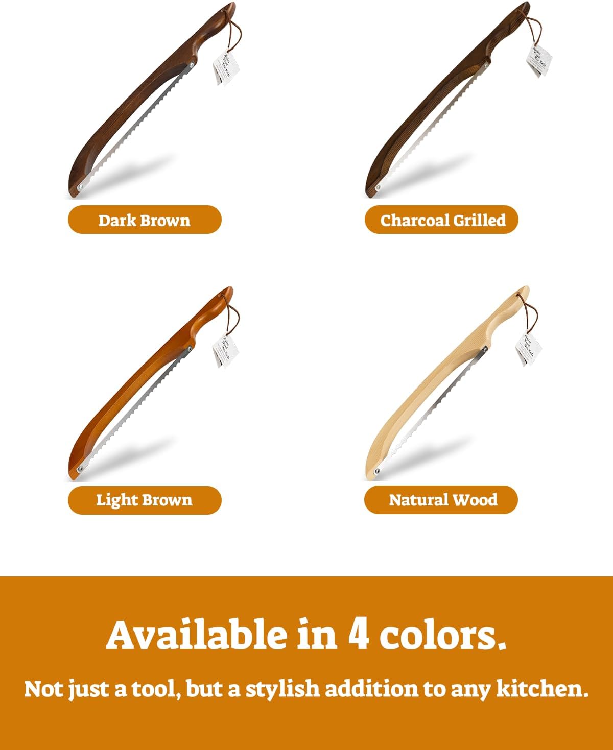 16.5” Bread slicer for Homemade Bread, Serrated Bread Knife for homemade bread with Bow Design, Premium Bread Knife, Bread Slicer, Bread Cutter for Bagels, Baguettes, Natural Wood