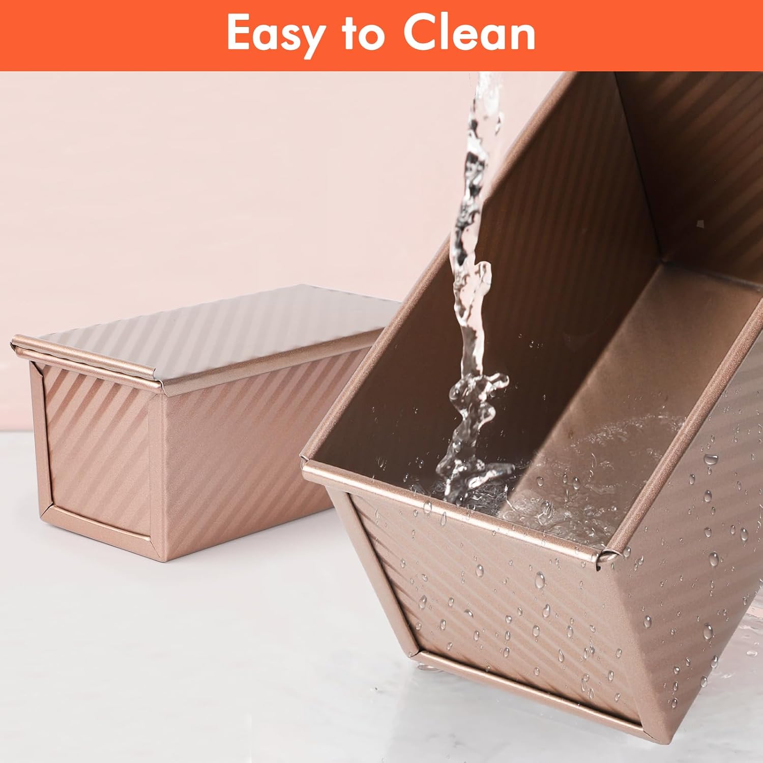 Beasea Pullman Loaf Pan with Lid, 2 Pack Non-Stick Bread Loaf Pans for Homemade Bread 1 lb & 0.5 lb Carbon Steel Bread Toast Box with Dough Scraper for Bread Toast Oven Baking - Rose Gold