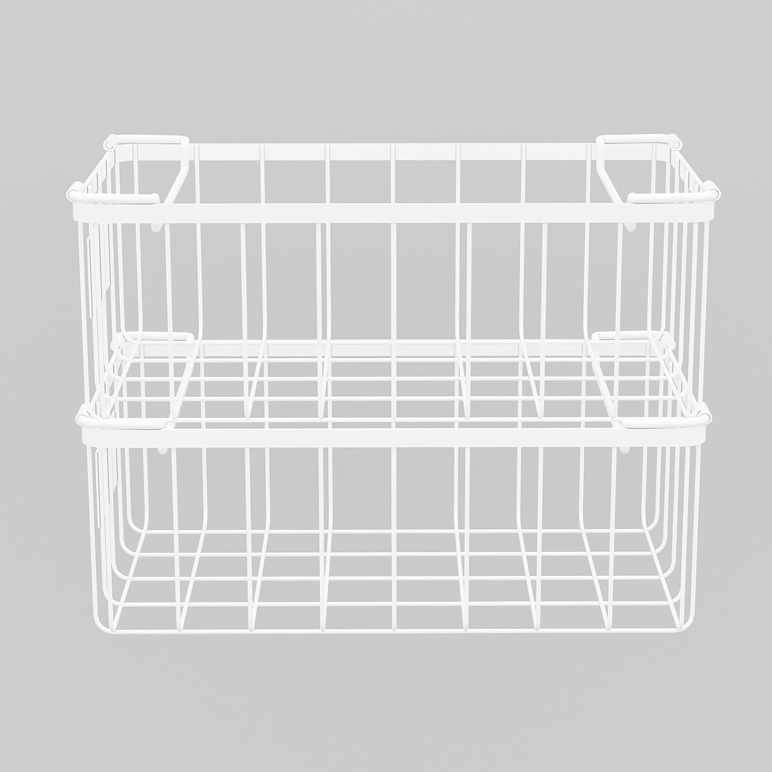 Freezer Storage Organize Baskets - 2 Pack Stackable Deep Freezer Organizer Bins for Most 7 Cu.FT Chest Freezer with Handles, Sturdy but Light, Metal Coated, Add Space, Easy to Reach