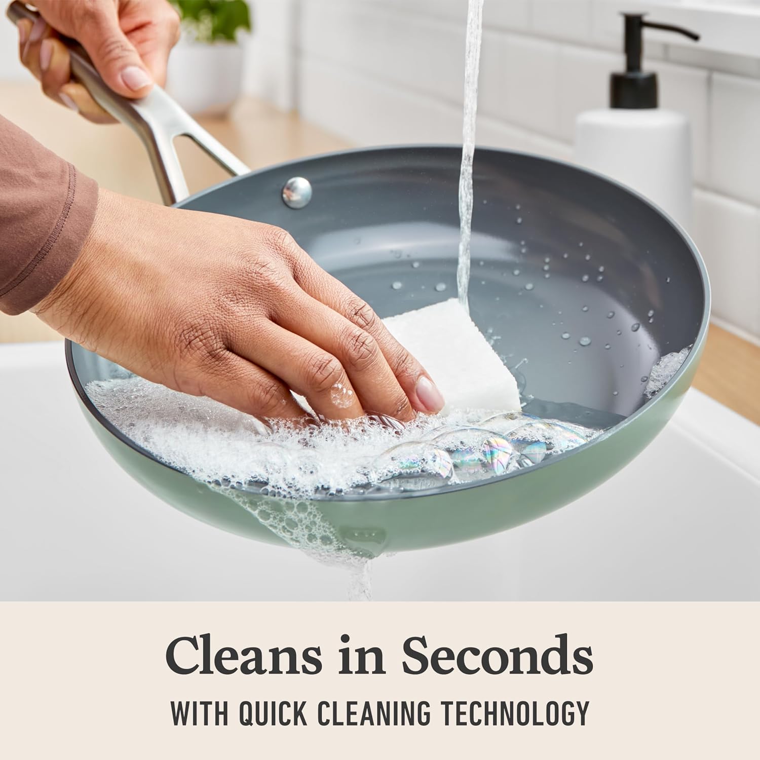 - Cookware Cleans in Seconds with Quick Cleaning Technology: Nonstick surface keeps foods from sticking so you can spend more time cooking, less time cleaning.