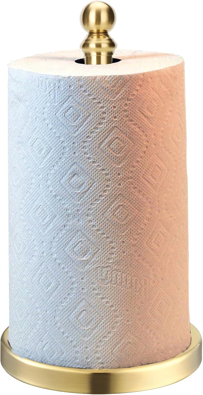 Gold Paper Towel Holder Countertop with Weighted Stainless Steel Base, One-Handed Design No Tipping Over, Standing Paper Towel Holder Standing in Brushed Gold Finish