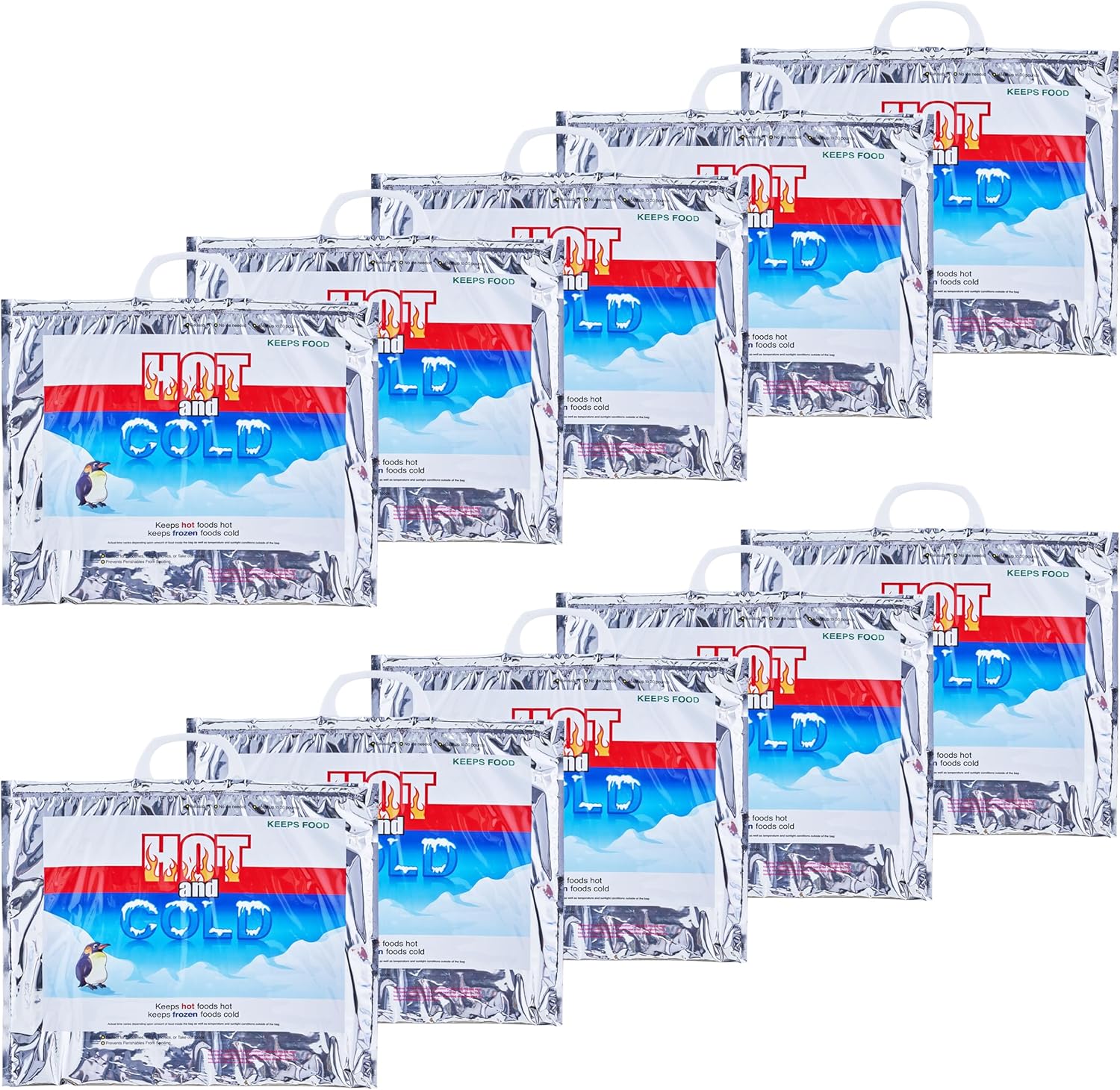 Superio Hot and Cold Insulated Bags for Food Delivery, Grocery Shopping Bags, Food Storage for Hot and Frozen Food for Travel, Disposable Cooler Bag, Reinforced Thermal Lunch Bag (10, 15.5"x13")