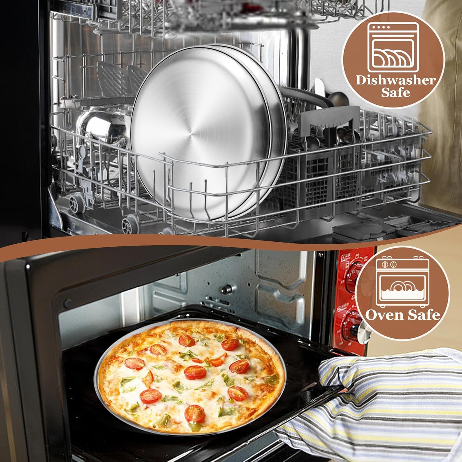 - Non-Toxic & Healthy: TeamFar 9 inch pizza pans are made of premium stainless steel, No any toxic or chemical coating leaching into your food, Healthy and safe for daily use, Great alternative to aluminum/ coated pans