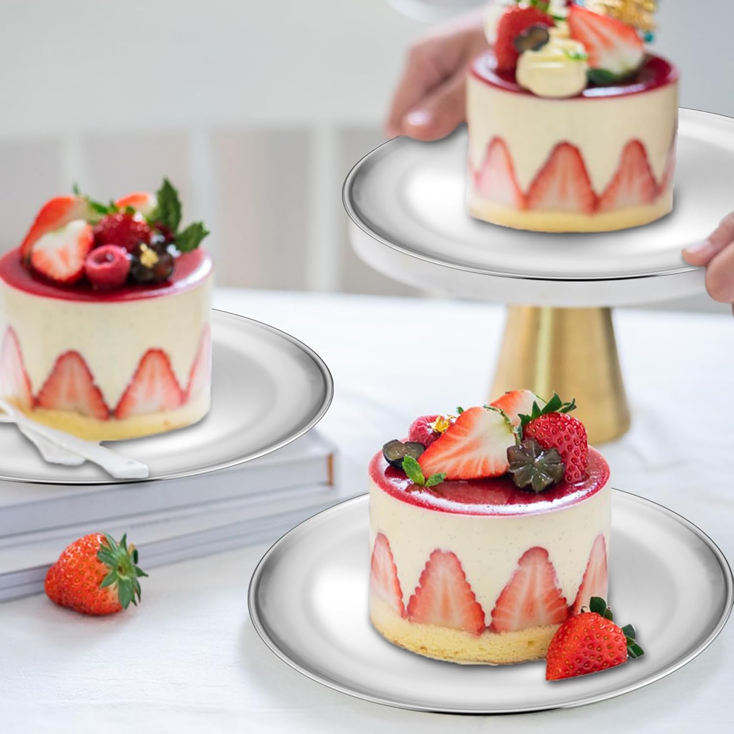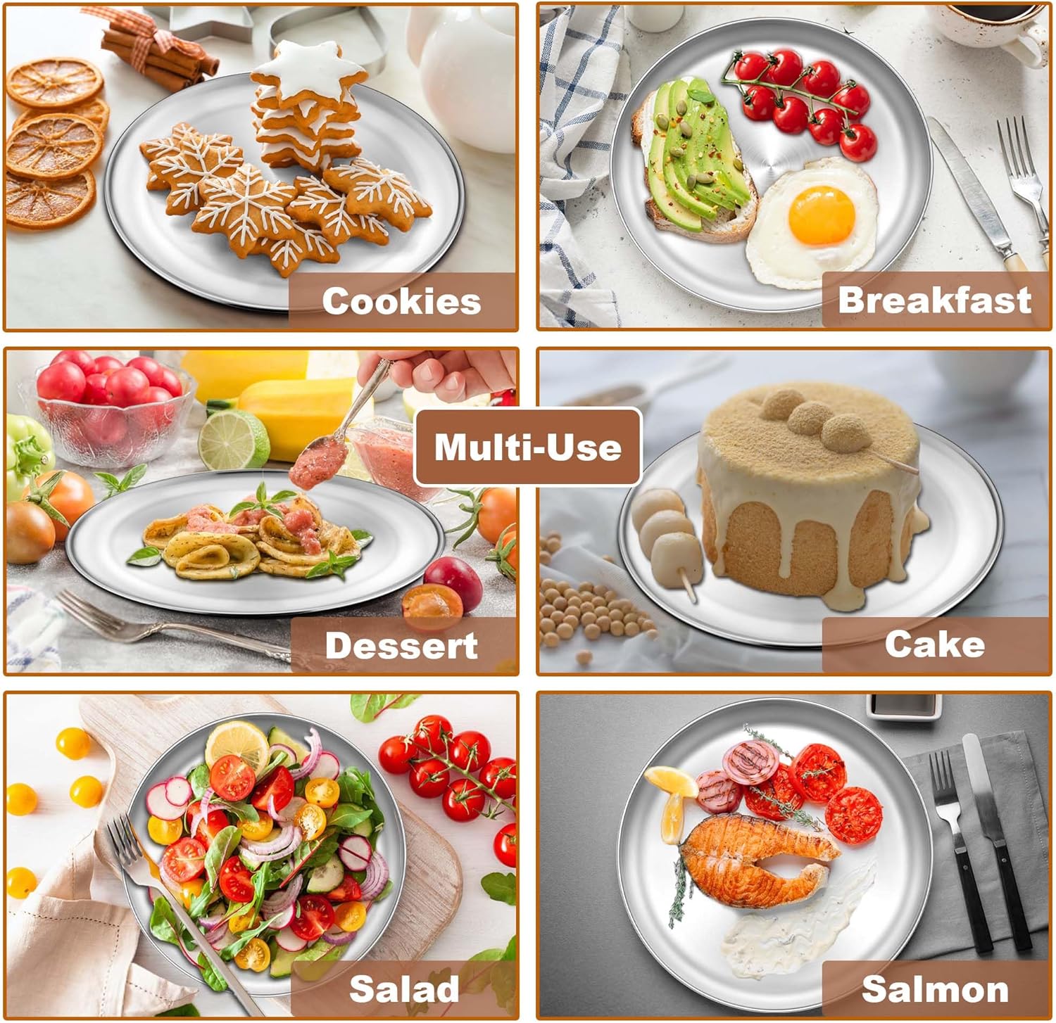- Versatile: Sized 9’’ Dia x 0.7’’ H, Pack of 4 are suitable to make different flavors of pizza at once, Compact size for baking small pizza cookies and pies, As serving pan for fruits, snacks, dessert, Also great as metal dinner plates for kitchens, restaurants, picnics, outdoor activities, Meeting your needs for various occasions
