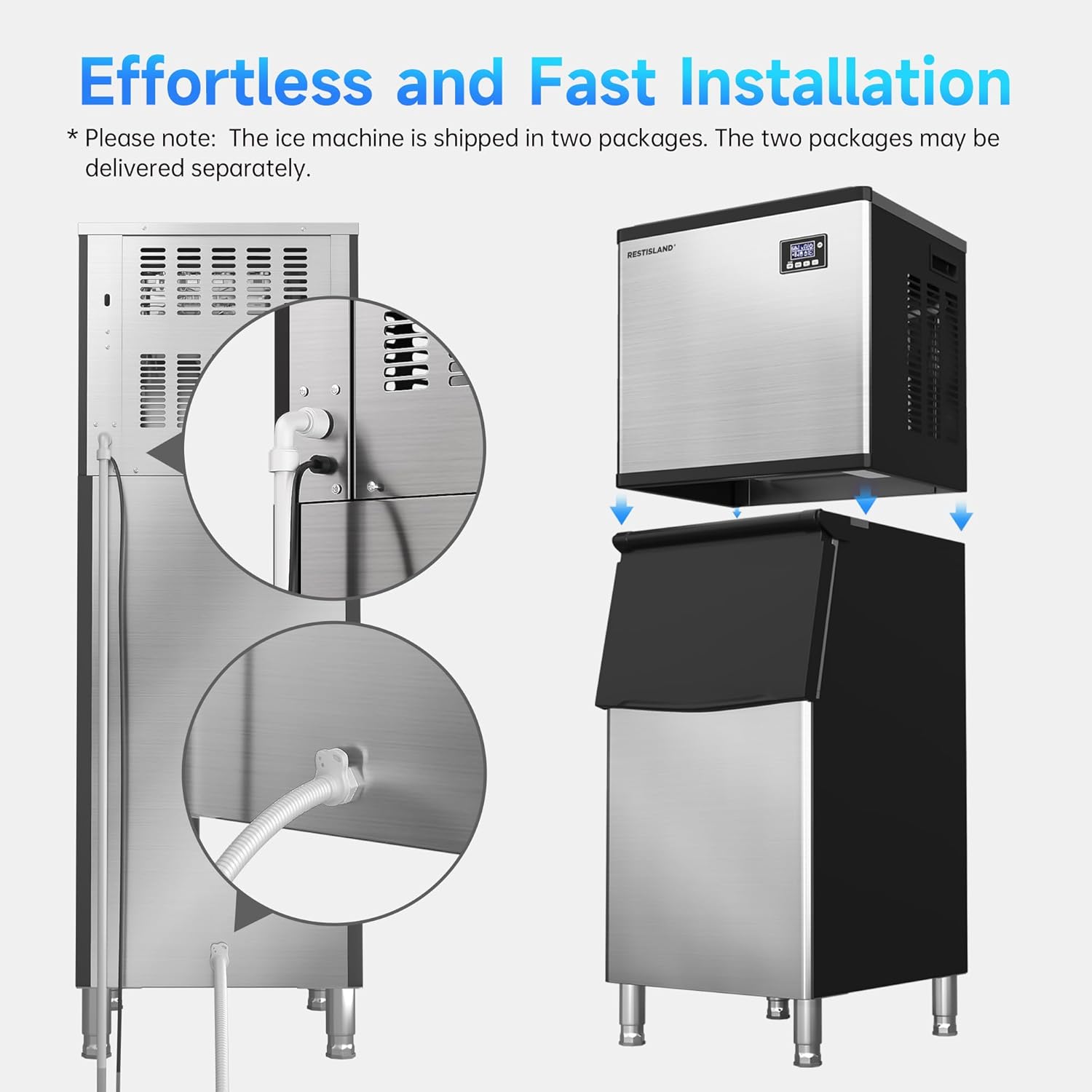 - Fast Ice Making: ELT certified and featuring a powerful 750W SECOP compressor, it can produce about 360 lbs of ice cubes every 24 hours. One cycle can produce 160 pieces of ice in just 8-15 minutes, meeting the ice demand of about 5000 cups of drinks every day. The machine can store up to 200 lbs of ice at a time, making it ideal for commercial use.