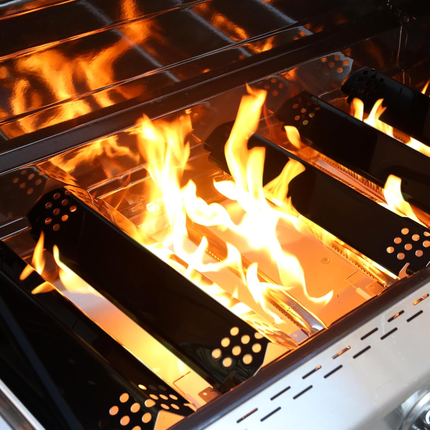 - BURNER&HEAT PLATE: Made of porcelain steel heat plate and stainless steel burner tube replacement set, corrosion resistance and heat resistance, easy to install. Distributes the flame evenly, allowing the fire to cook the meat at an even rate, making your grill perform like new