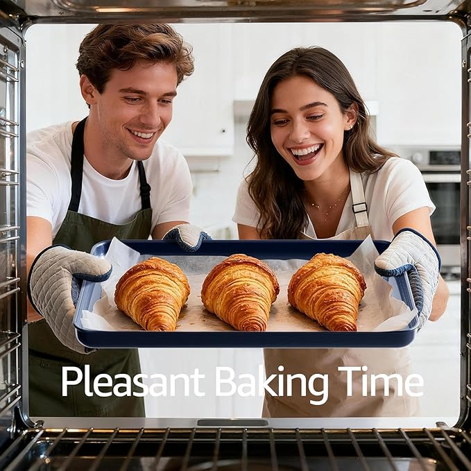 - Durable & Sturdy Material: The baking pan set is made of durable carbon steel, No PFOA, PFOS, PTFE, and BPA. Durable carbon steel material for long time use. Dishwasher safe, but Hand Washing is recommended for longevity. No microwaving