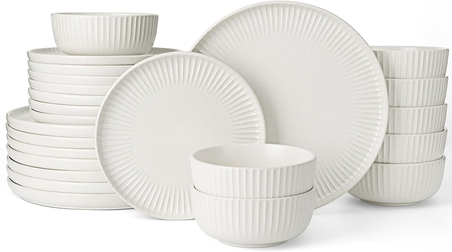 - [Elegant & modern]: The dinner set features a distinctive handcrafted reactive glaze with ribbed textures, exuding a warm and inviting allure