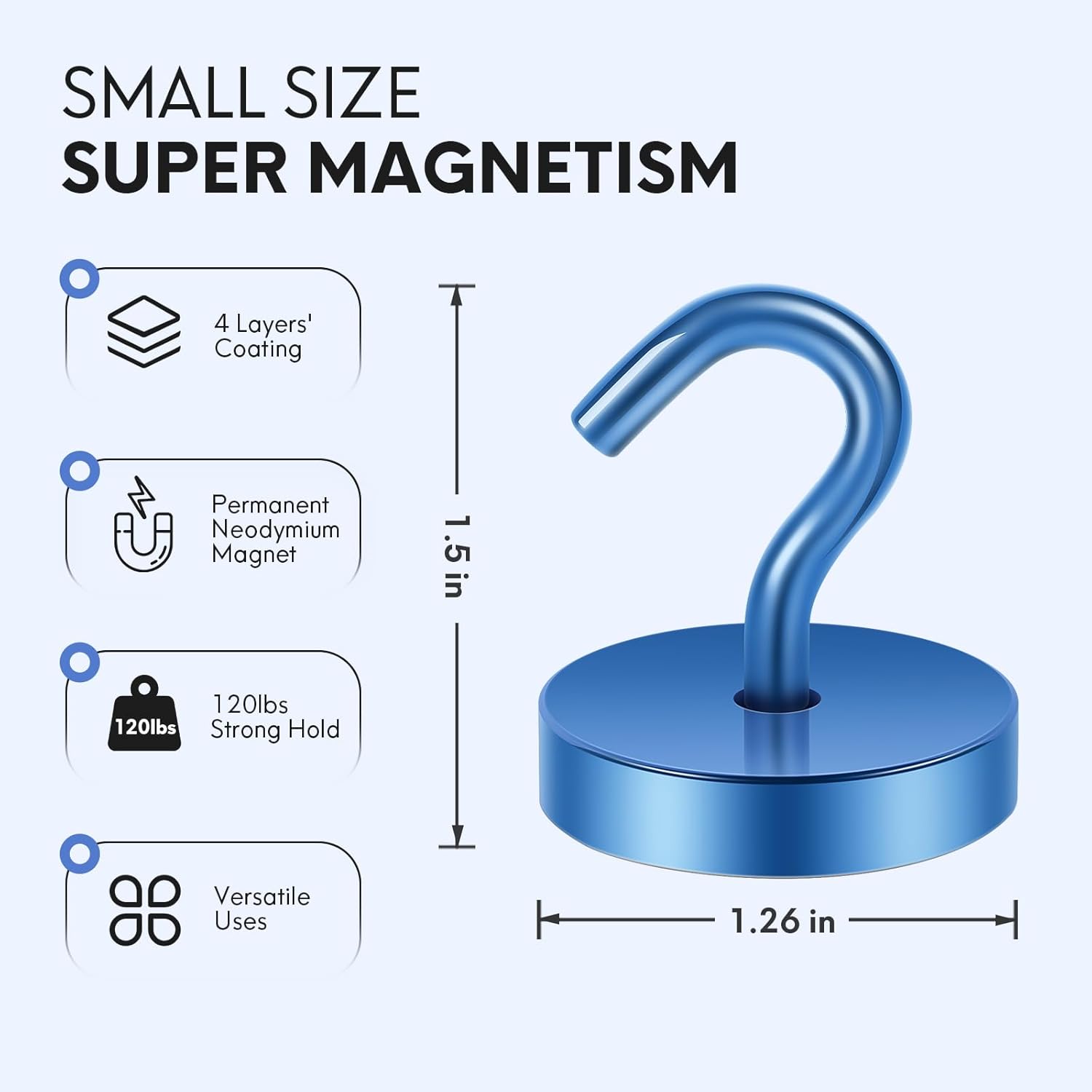 Neosmuk Magnetic Hooks, Cruise Ship Essentials, 120lb+ Heavy Duty Magnetic Hooks for Cruise Cabins, Refrigerator, Grill, Hanging, and Travel | Extra Strong Must-Haves Magnet Hook,Navyblue, Pack of 10