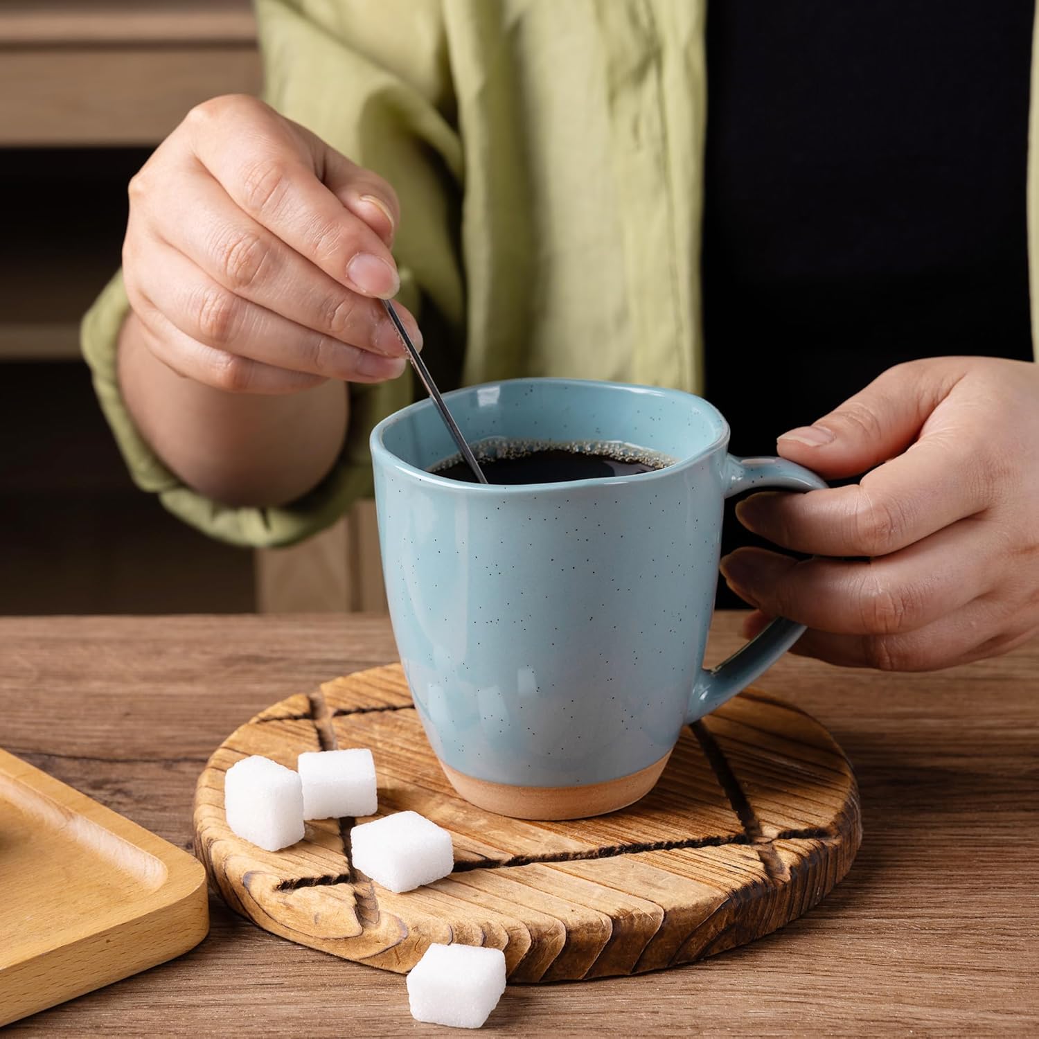 AmorArc 12oz Ceramic Coffee Mugs set of 6, Stylish Coffee Mugs with Rustic Terracotta Underside for Latte/Cappuccino/Milk/Cocoa, Dishwasher&Microwave Safe, Stone Blue