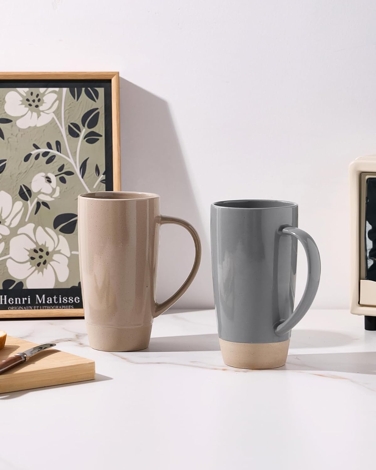 - Coffee Mugs Set of 2: The ergonomic handle provides a comfortable grip, and the large and carefully crafted handle can be easily grasped with just one hand without slipping off easily