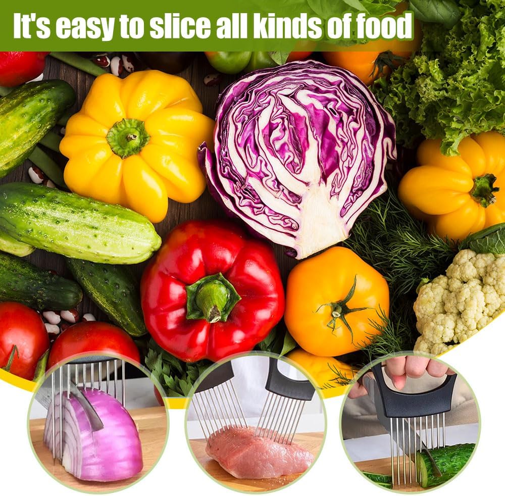 - 🔥【Stainless Steel Onion Slice Holder】Keep onions in place for quick and easy slicing with 10 stainless steel forks. This onion holder saves you time and prevents your hands from touching the onions.