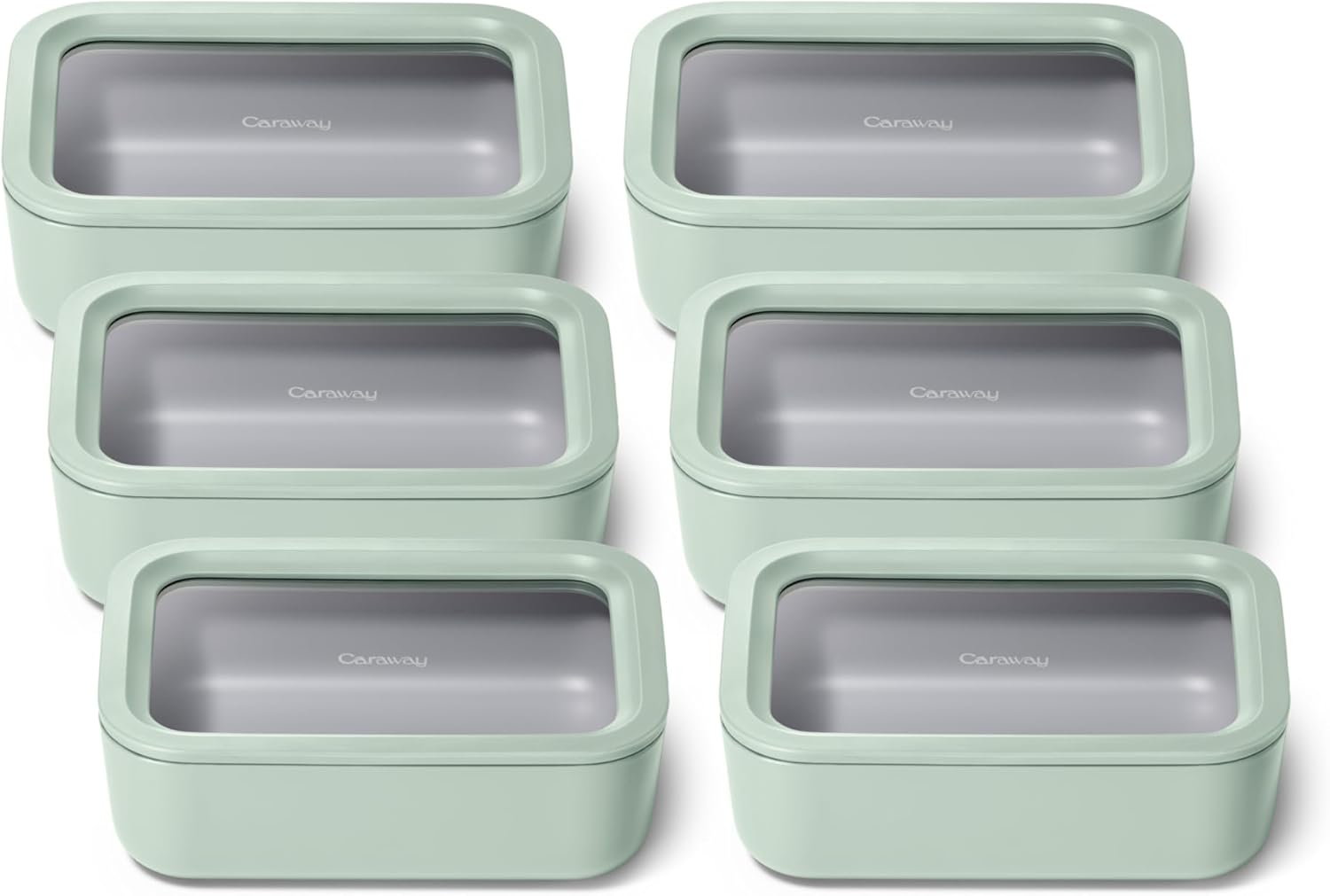 - MEAL PREP BUNDLE: Your weekly meal prep made easy with Caraway’s easy-to-store, non-toxic food storage containers. This set includes 6 medium containers featuring non-toxic, non-stick, ceramic-coated glass, this durable container makes prepping, storing, and serving easier than ever.