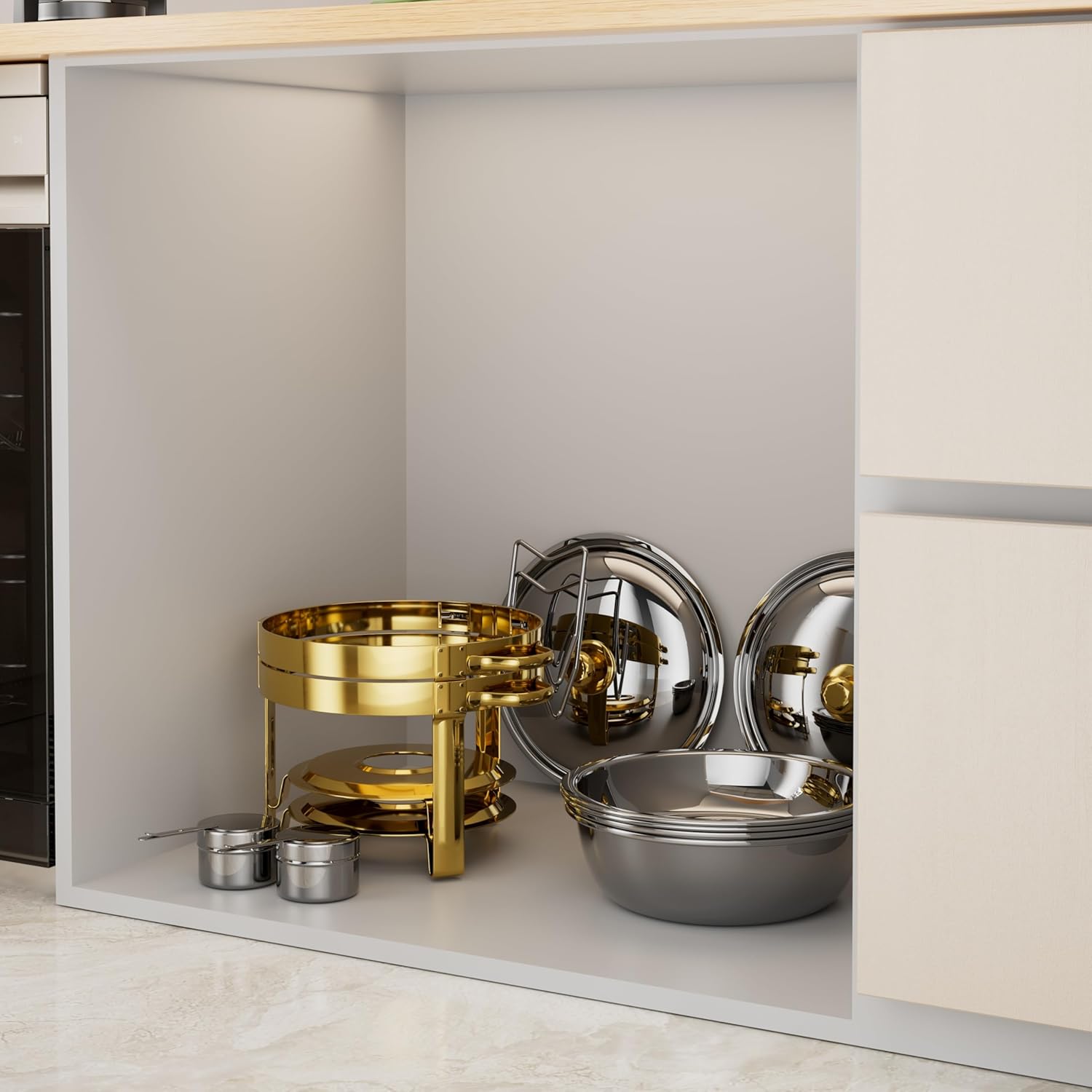 Chafing Dishes for Buffet, 4 Pack 5QT Round Stainless Steel Chafing Dish Set for Home Parties, Christmas Gatherings, Catering Events Complete Buffet Warmer Set (Golden 2)