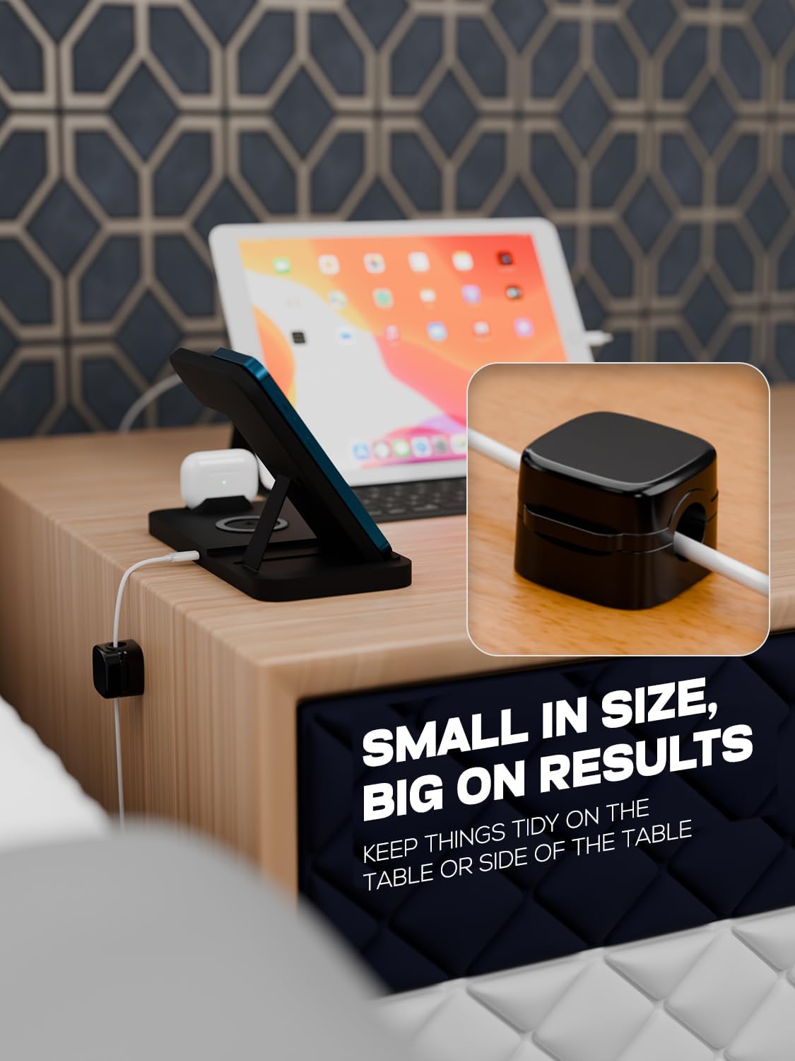 - 【Rock-Solid Magnetic Lock】:- The strong magnet of the phone cord holder prevents cables from popping out. Cord holders have a powerful magnetic lock that keeps your cables secured & perfectly in place. Charging cable holder has a 7mm diameter which allows smooth cable movement
