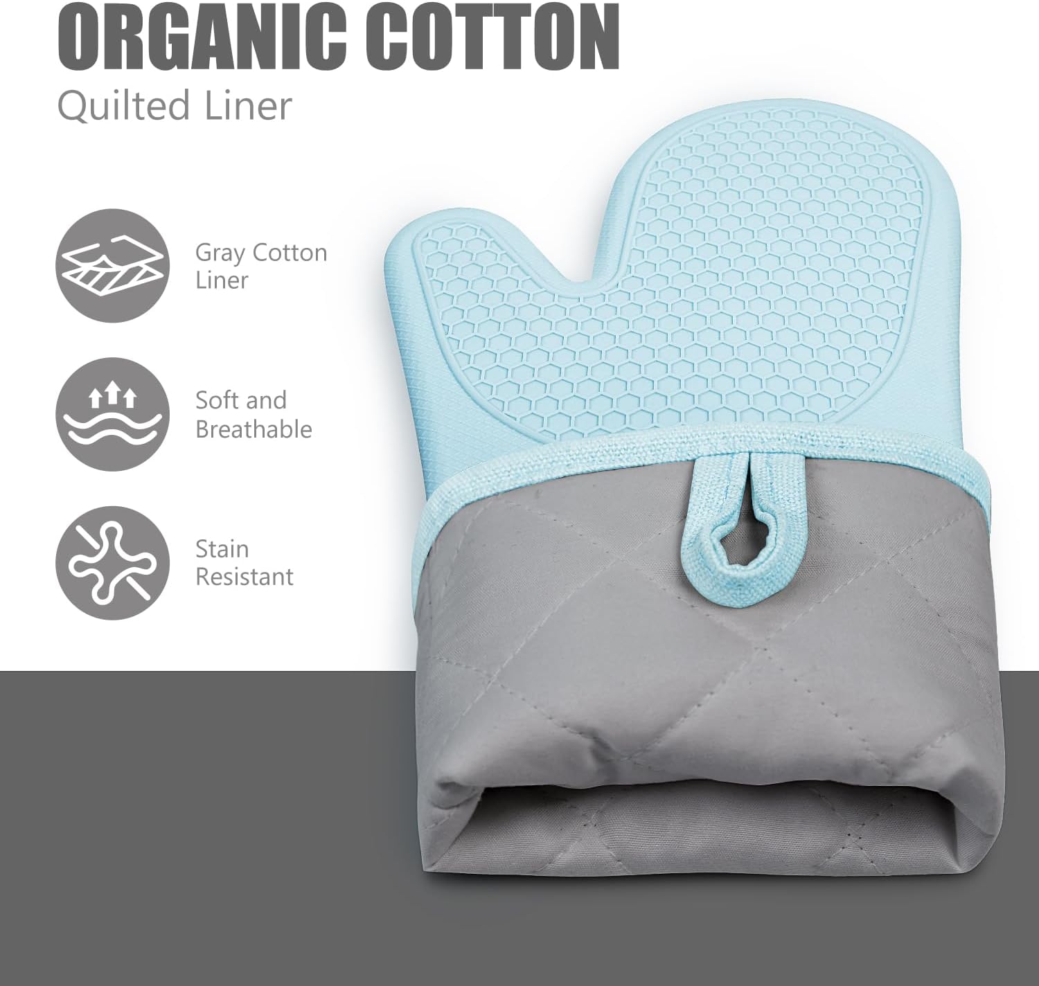 Rorecay 6pcs Oven Mitts and Pot Holders Sets, Extra Long Silicone Oven Gloves Heat Resistant 500 Degrees Non-Slip Potholders Hot Pads for Kitchen Baking Cooking, Quilted Liner, Winter Sky