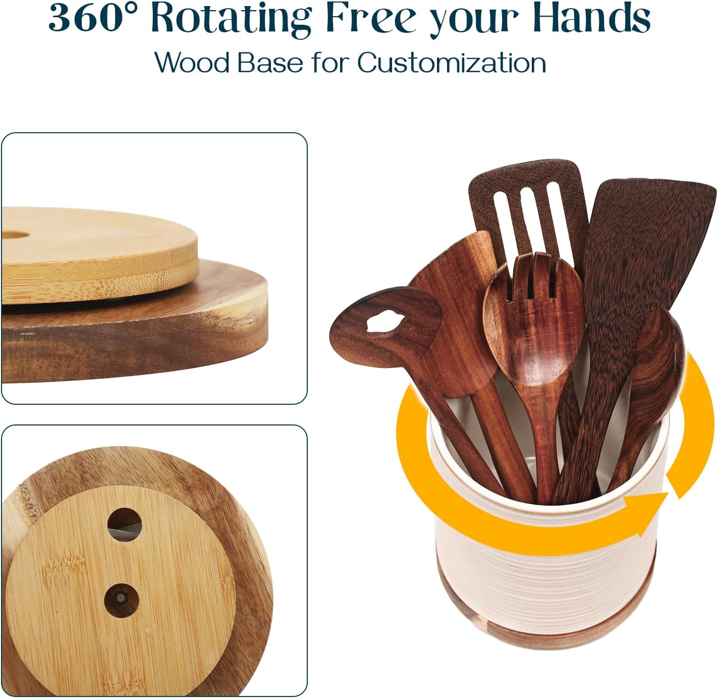 - Stable & Fall-Prevention Design: This utensil stand features a weighted bottom crafted from durable, non-detachable wood, ensuring exceptional stability and tipping prevention. Designed to keep your cooking tools upright and secure, this reliable utensil vessel is perfect for the busiest kitchen moments. Its elegant yet sturdy construction makes it an essential utensil caddy, offering a seamless blend of style and functionality while keeping your tools always within easy reach.