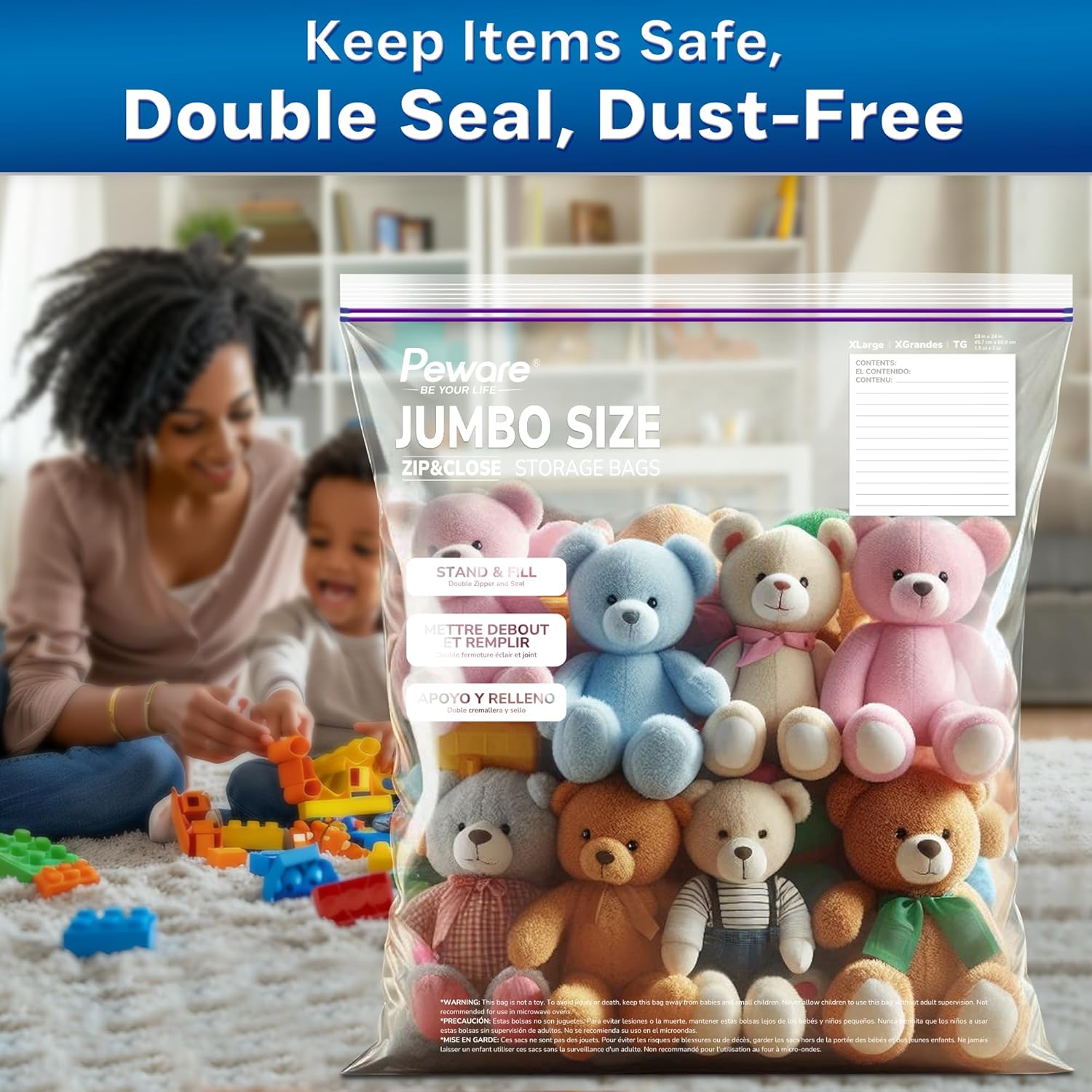 - EXTRA LARGE 18X24 INCHES SIZE: Perfect for storing bulky items like blankets, pillows, or large batches of food. With a 5-gallon capacity, these bags are the ultimate solution for heavy-duty storage needs.